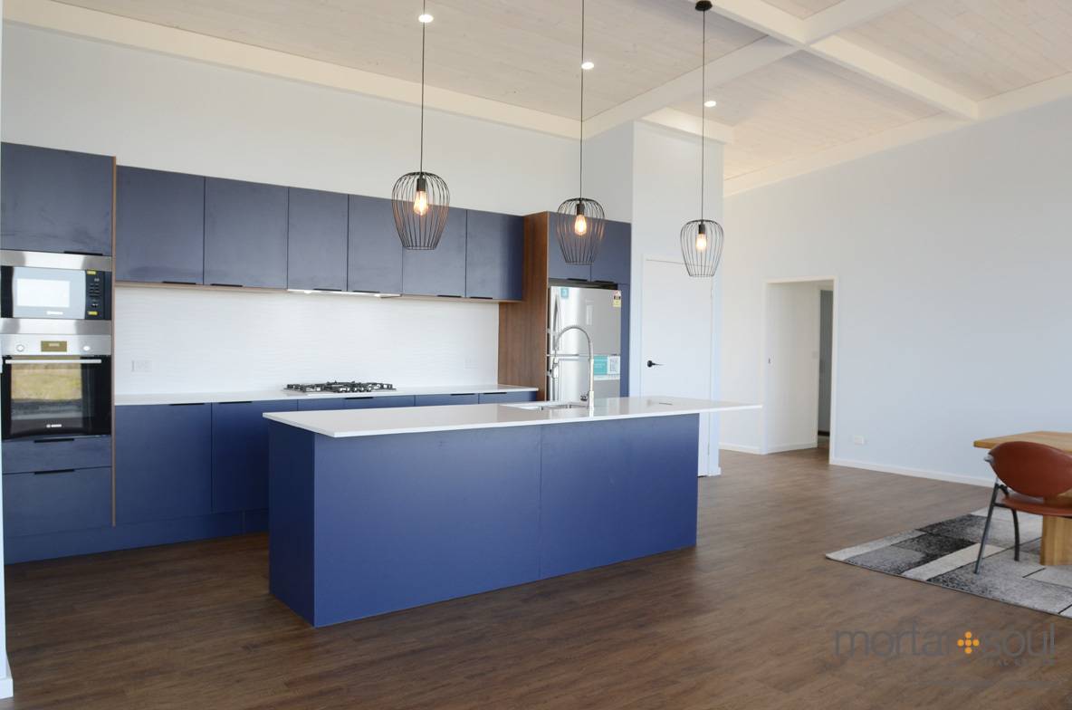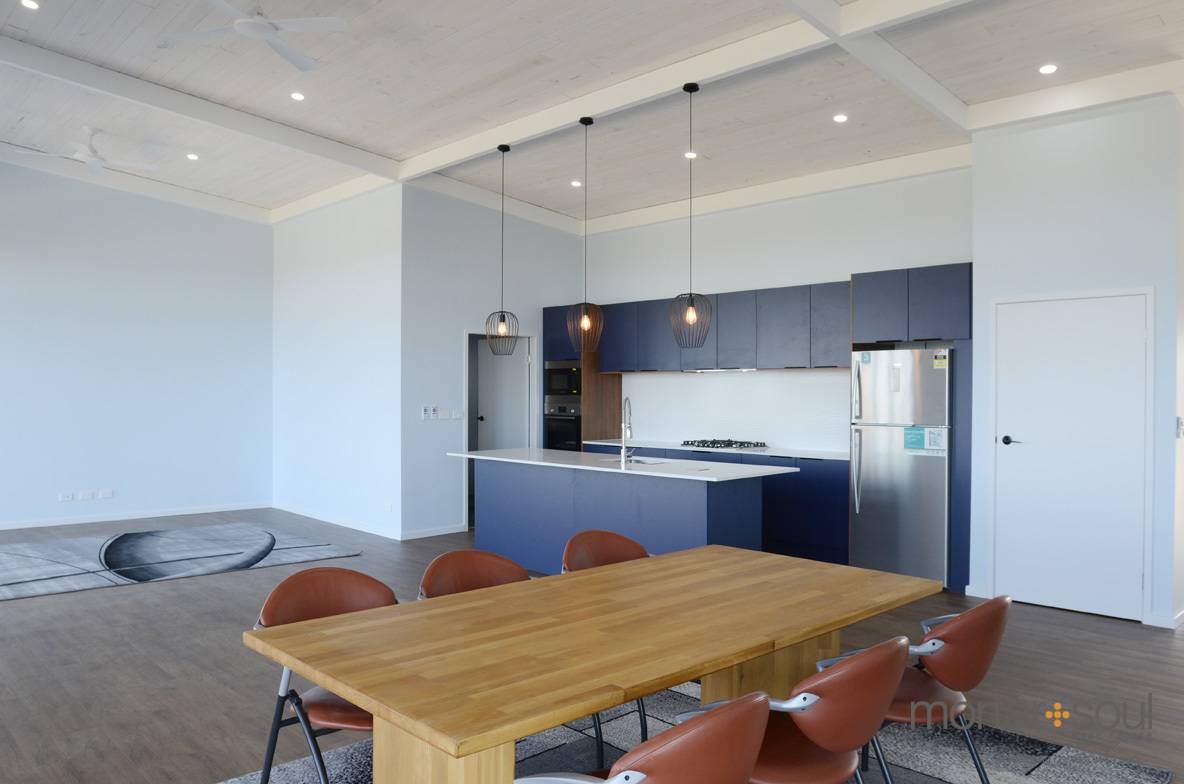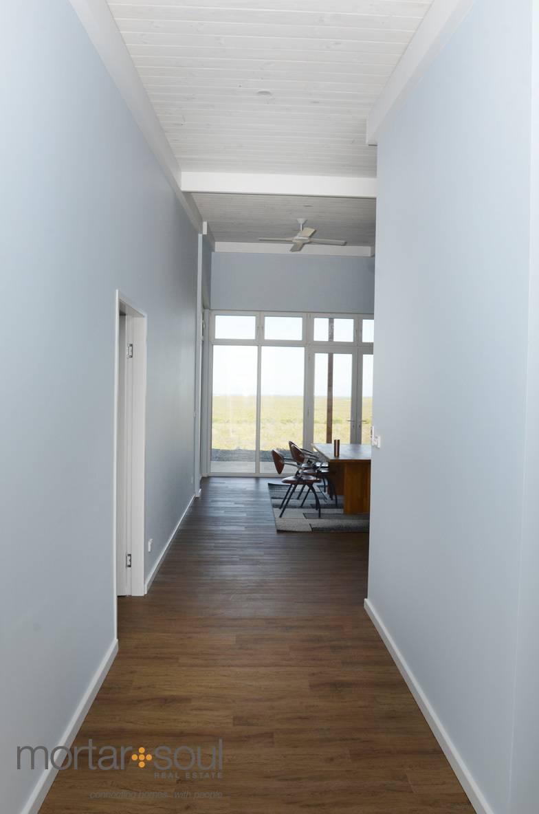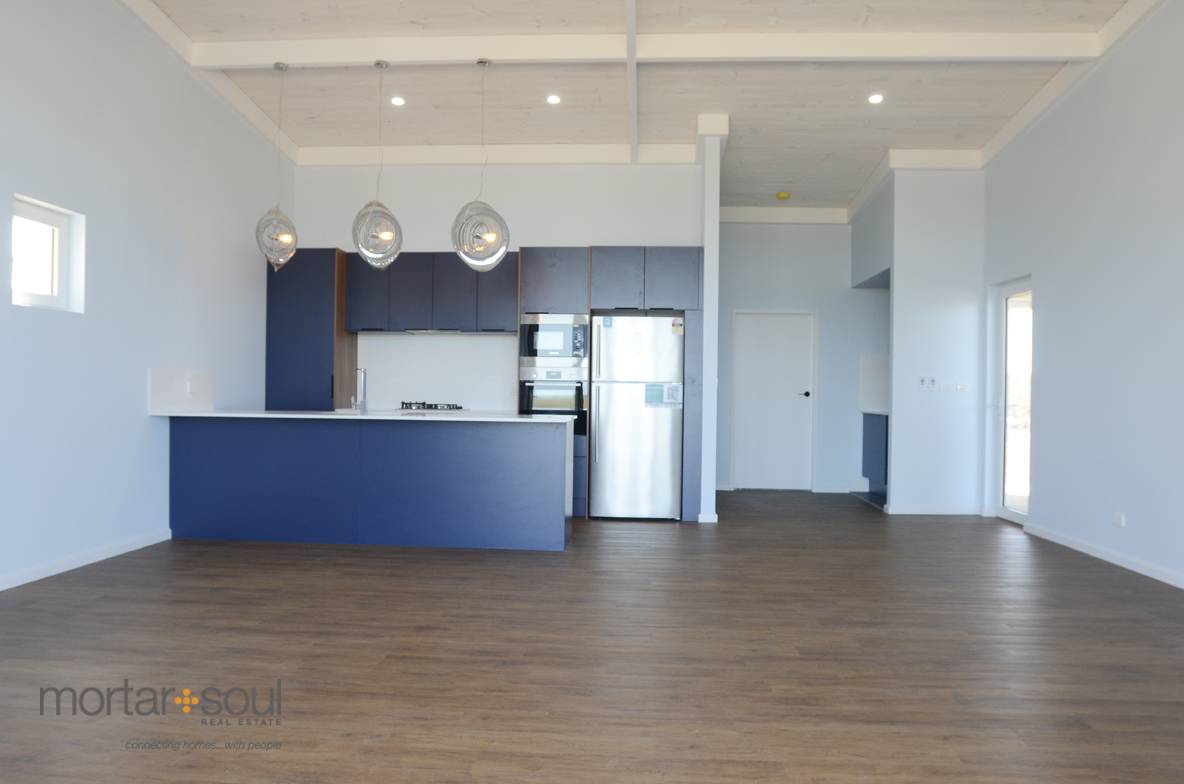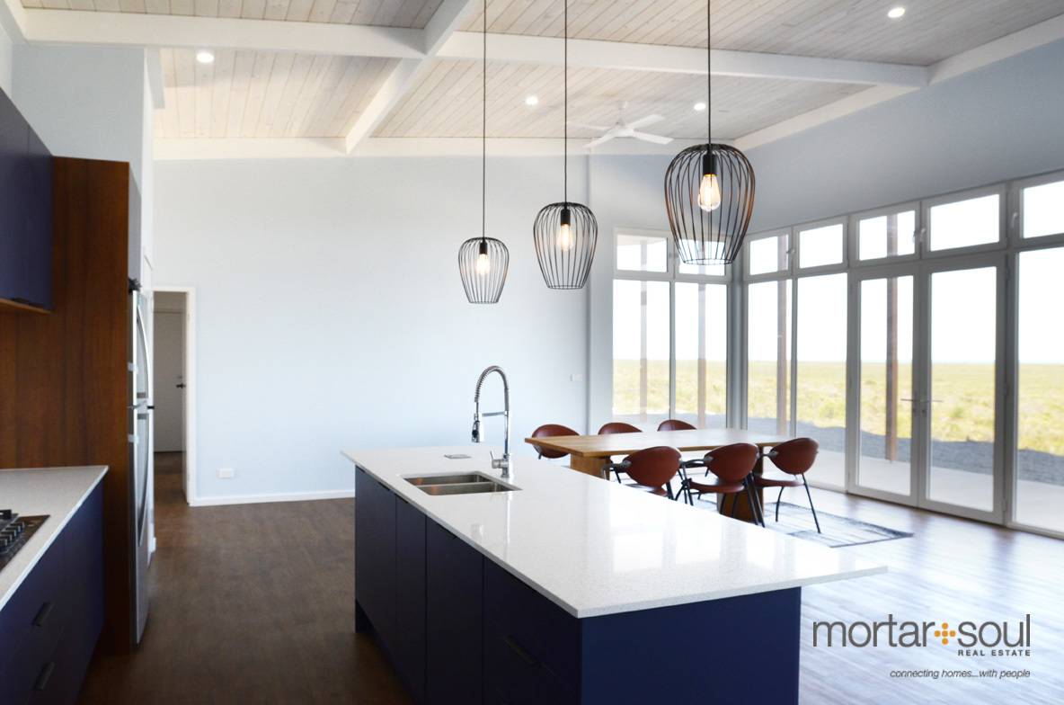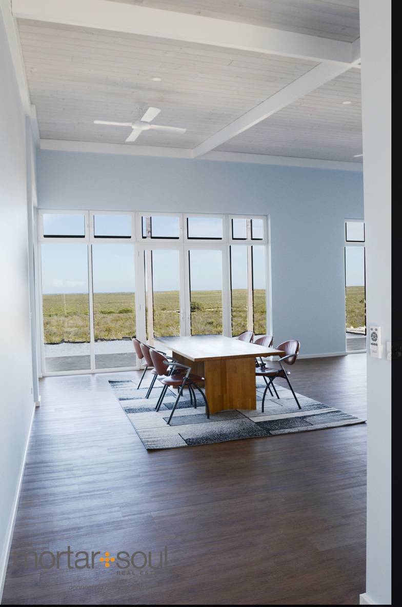 On entry to the main residence, you are greeted by the open plan kitchen, dining and family area with a 2 storey raked ceiling offering superior air flow when combined with the double glazed, double locking French doors to both sides of the living area. Once you have taken in the sheer bold simplicity of the living area’s design, you are then moving out onto the patio area and picture perfect vista across natural bush to Jurien Bay and the Indian Ocean.