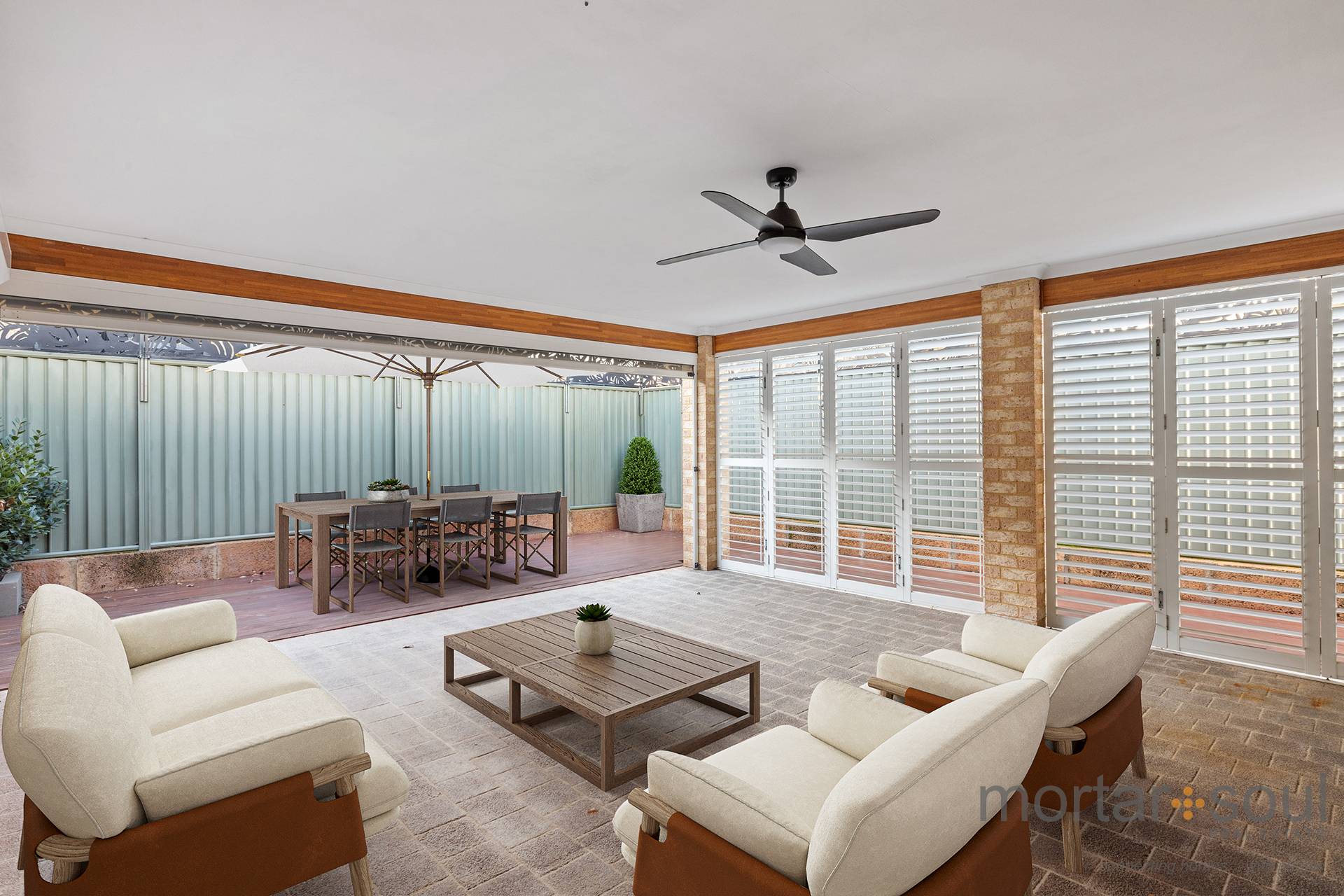 Outdoors, a fabulous alfresco-entertaining area off the family room has a ceiling fan and can be fully enclosed by white plantation shutters and a pull-down café blind, protecting everybody from the elements, no matter what the time of year. It also spills out to the side deck for some extra space for those larger gatherings and special occasions, if required.