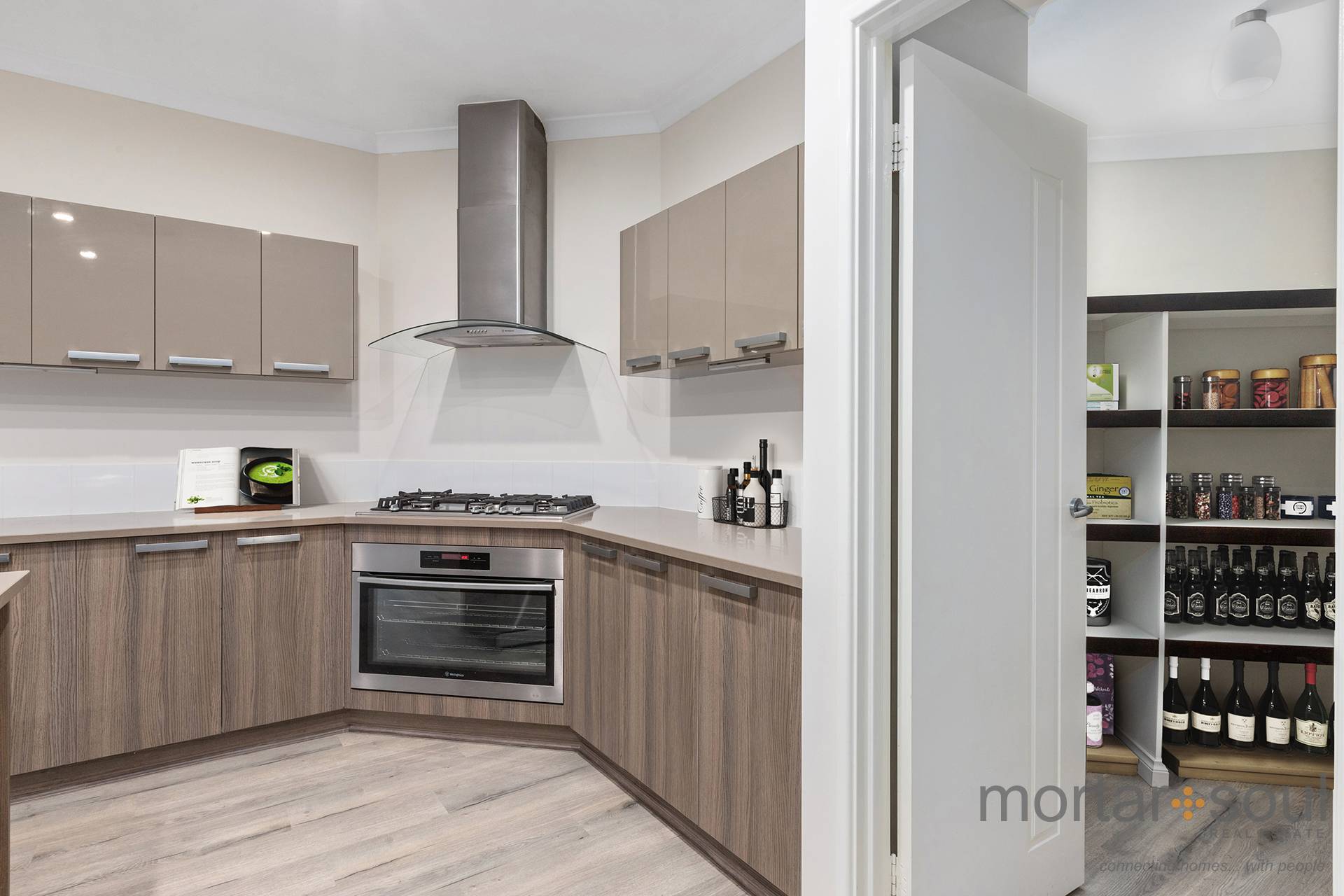 The main hub of the house is an open-plan family, dining and kitchen area where sparkling stone bench tops, double sinks, a huge walk-in pantry and ample storage and cupboard space meet excellent stainless-steel range-hood, gas-cooktop, oven and dishwasher appliances.