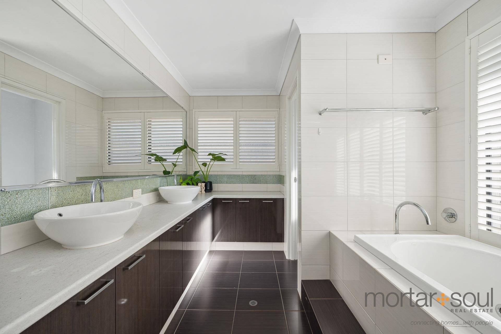 All four of the spare bedrooms have built-in wardrobes here, whilst the larger master suite enjoys the luxury of a huge walk-in robe – alongside a private fully-tiled ensuite bathroom with a double rain shower, a central bubbling spa bath, separate toilet and twin “his and hers” vanities. The fully-tiled main family bathroom comes complete with a separate shower and bathtub – adjacent to the separate second toilet.