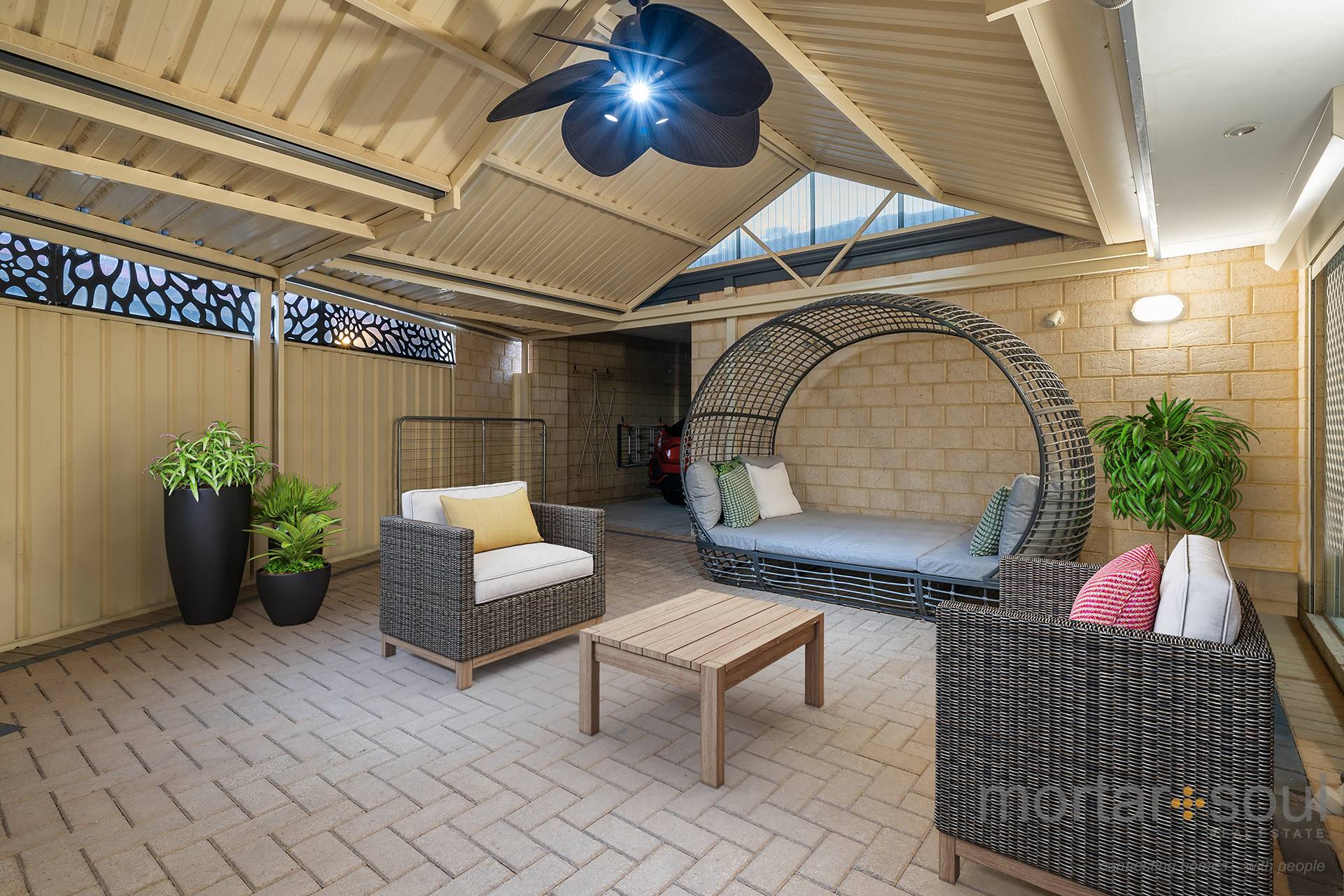 • ·         outdoor ceiling fan, under the back patio