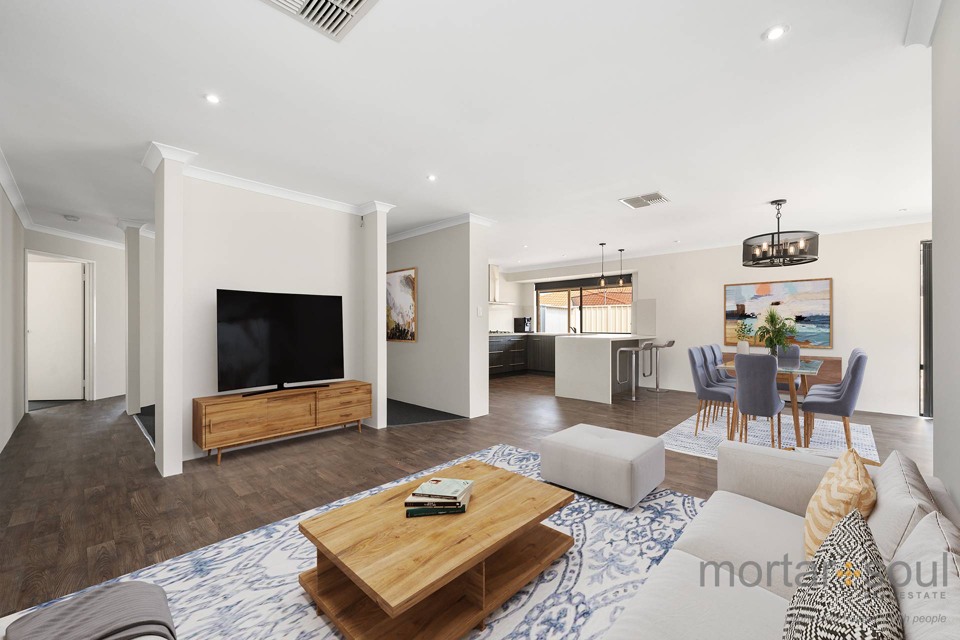 This surprisingly-convenient, yet serene, location allows you to walk to a plethora of picturesque local parklands, Port Kennedy Primary School and St Bernadette’s Catholic Primary School, with shopping centres, Warnbro Train Station, bus stops, the Links Kennedy Bay golf course, the Warnbro Dog Beach and major arterial roads – for easy access to Rockingham, Mandurah and the Perth CBD – all very much within arm’s reach, in their own right.