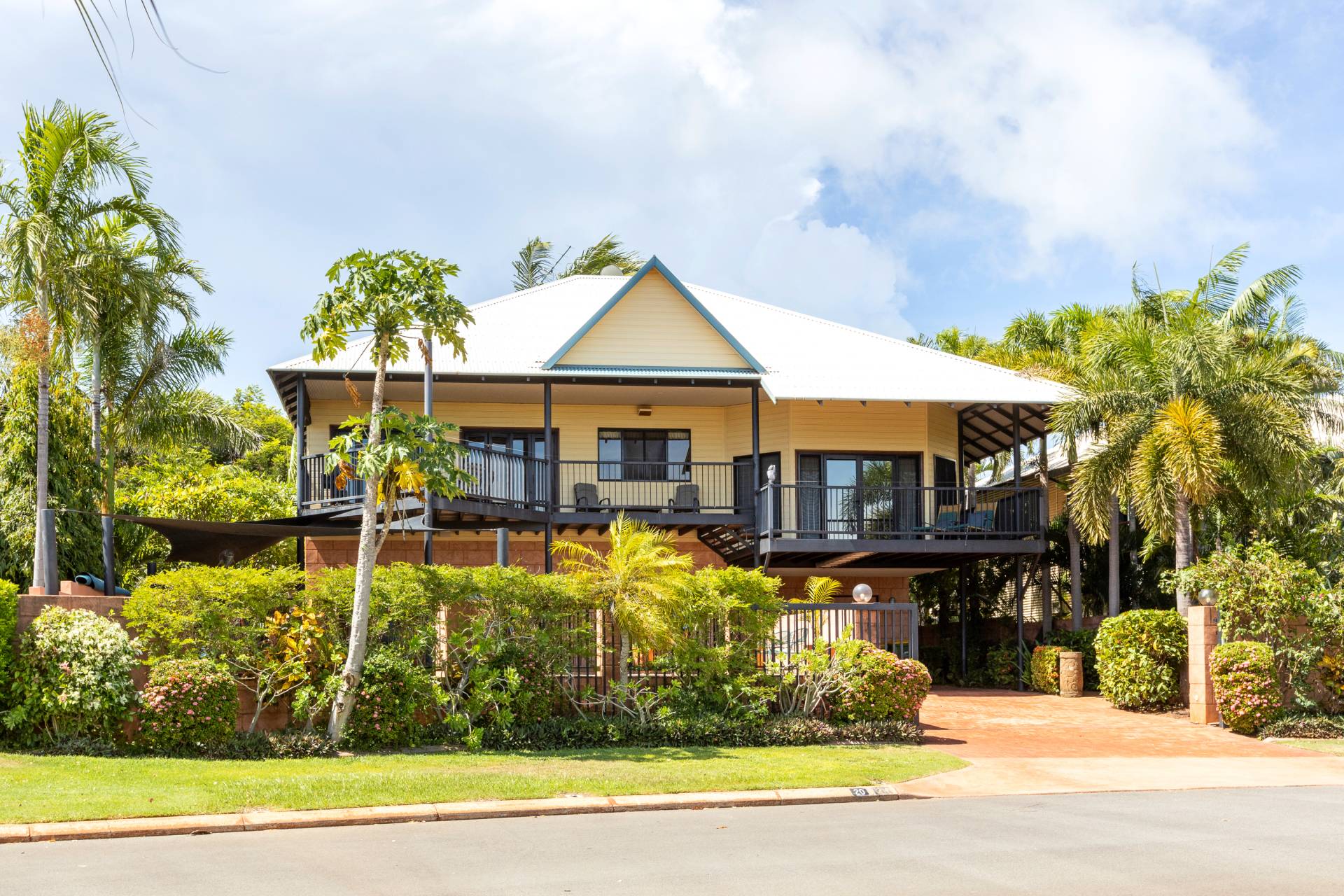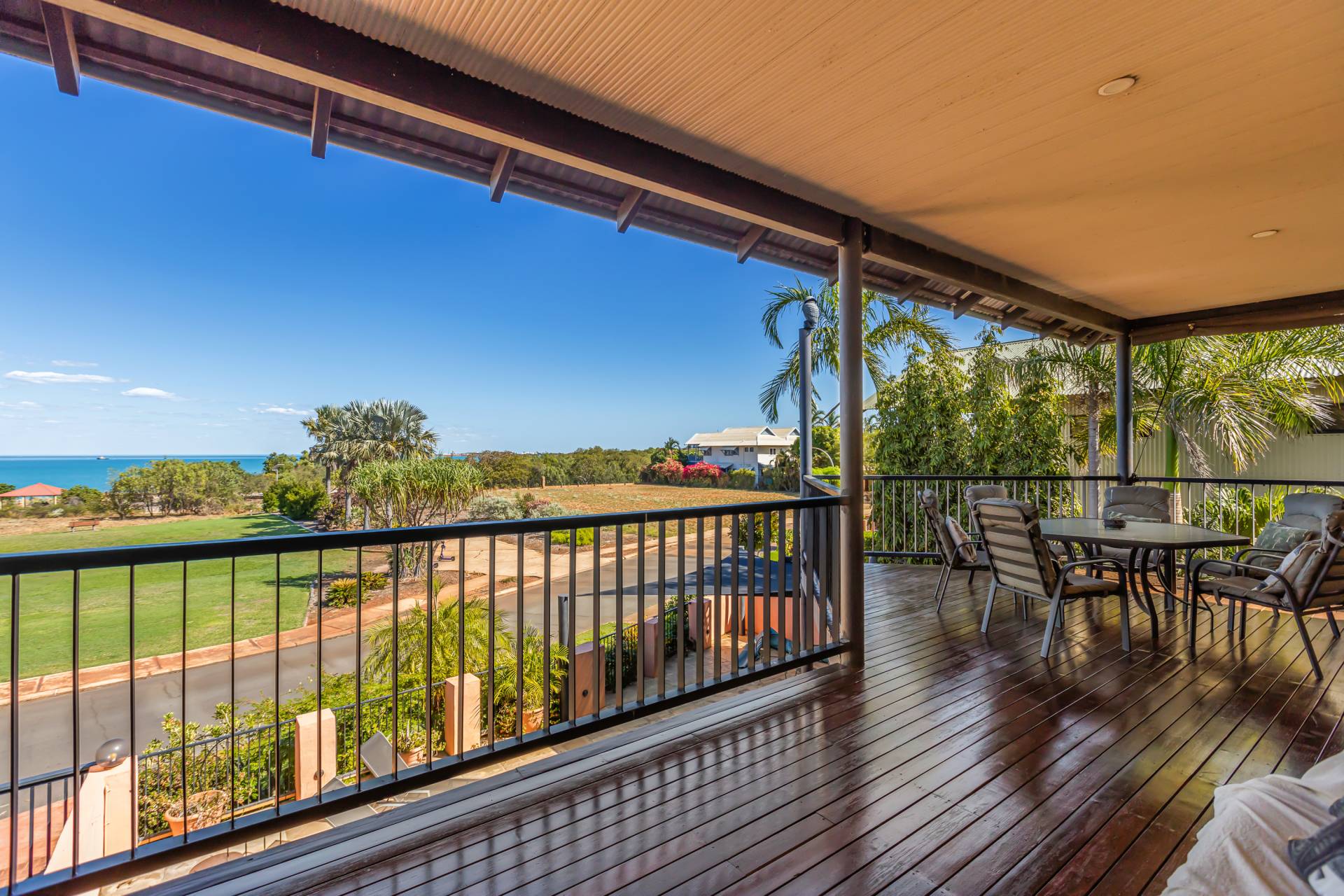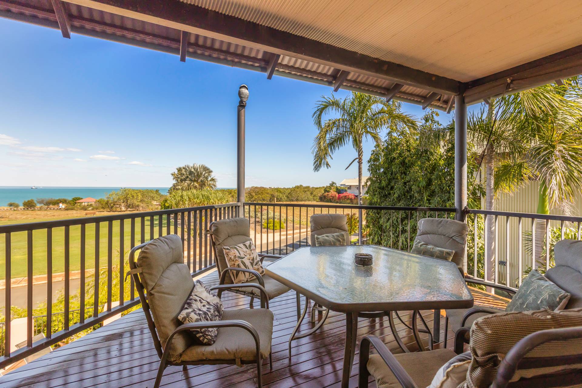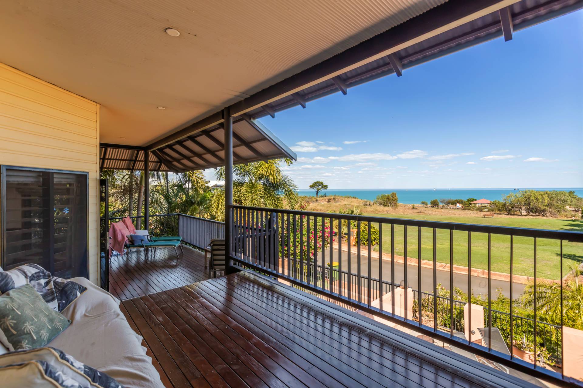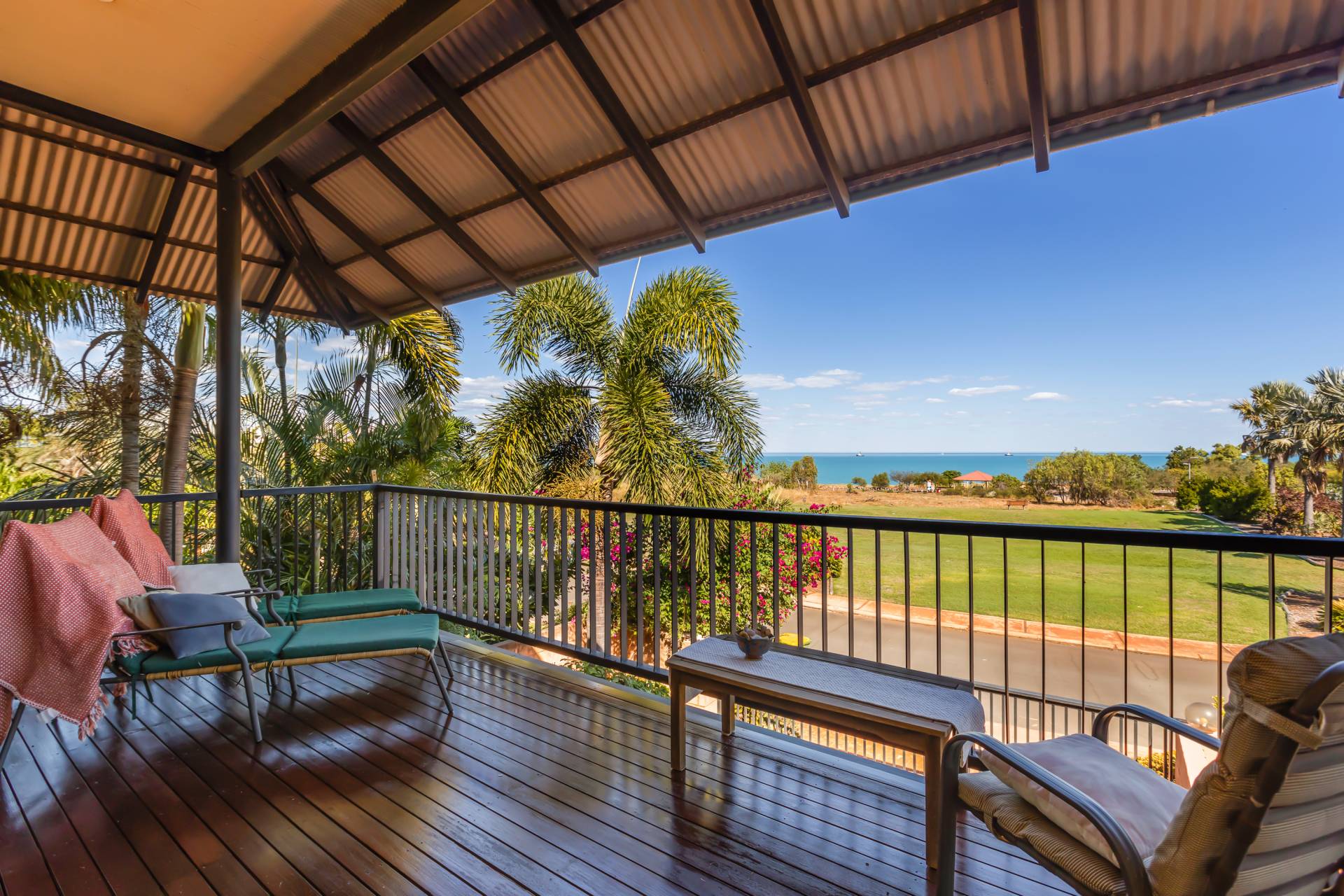 Wake up to the glorious view of the azure waters of Roebuck Bay! Life doesn’t get much better with 20 Demco Drive, Broome. Walk across the road and you are on the beach for an early morning stroll or enjoy a sunset drink on your own balcony.                                            Flaunting sprawling balconies and a lush, established garden, 20 Demco boasts a perfect blend of picturesque outdoor living and seclusion from the bustling town of Broome.             Enforced with a brick exterior, this 5x4 with an office is ideal for large families or buyers searching for the right property for a bed-and-breakfast. Matched with a spacious storeroom and ample parking space, the property has two entrances, one on the right of the property, and one on the left, allowing complete separation of the first and second floors of the property if so desired.