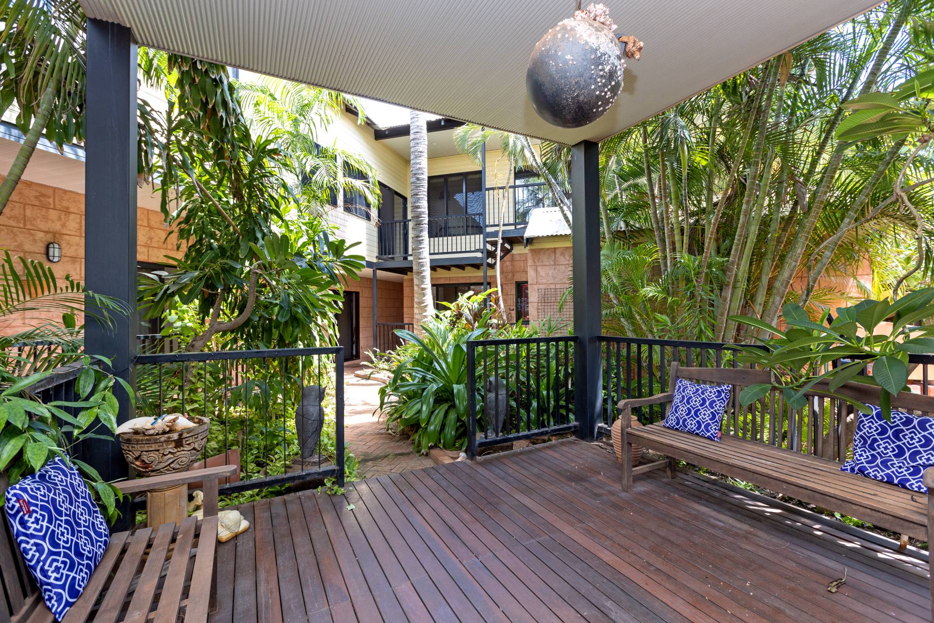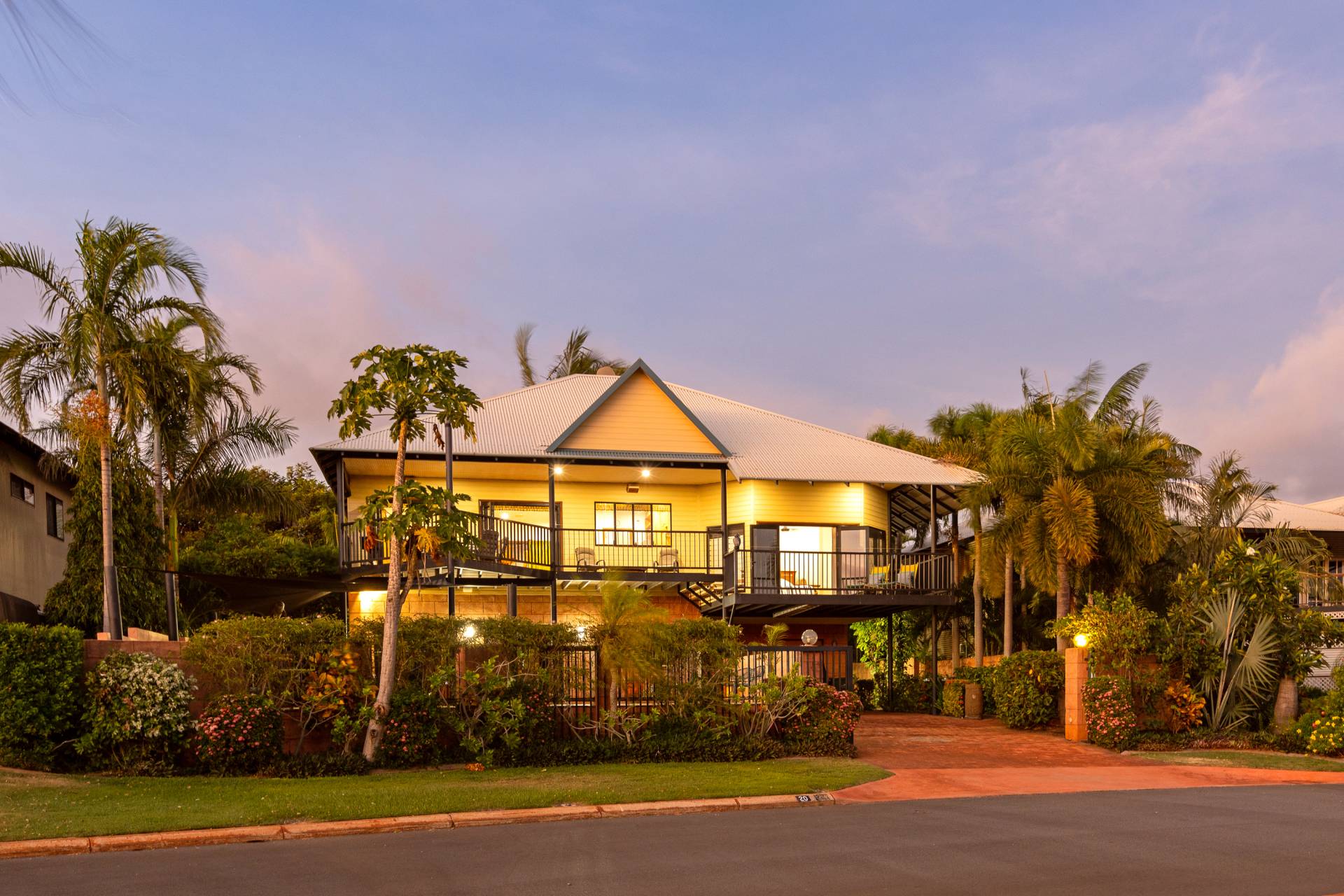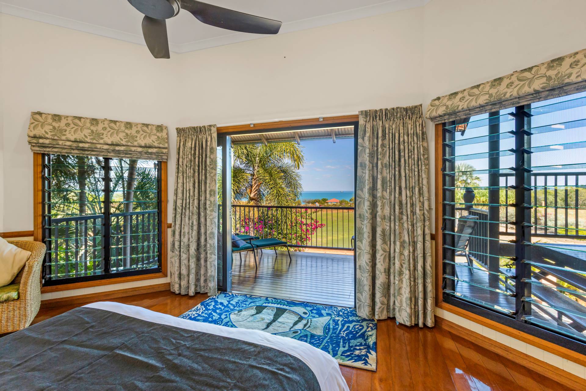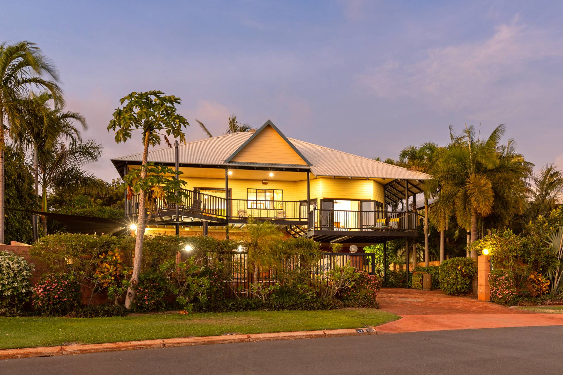 Wake up to the glorious view of the azure waters of Roebuck Bay! Life doesn’t get much better with 20 Demco Drive, Broome. Walk across the road and you are on the beach for an early morning stroll or enjoy a sunset drink on your own balcony.                                            Flaunting sprawling balconies and a lush, established garden, 20 Demco boasts a perfect blend of picturesque outdoor living and seclusion from the bustling town of Broome.             Enforced with a brick exterior, this 5x4 with an office is ideal for large families or buyers searching for the right property for a bed-and-breakfast. Matched with a spacious storeroom and ample parking space, the property has two entrances, one on the right of the property, and one on the left, allowing complete separation of the first and second floors of the property if so desired.