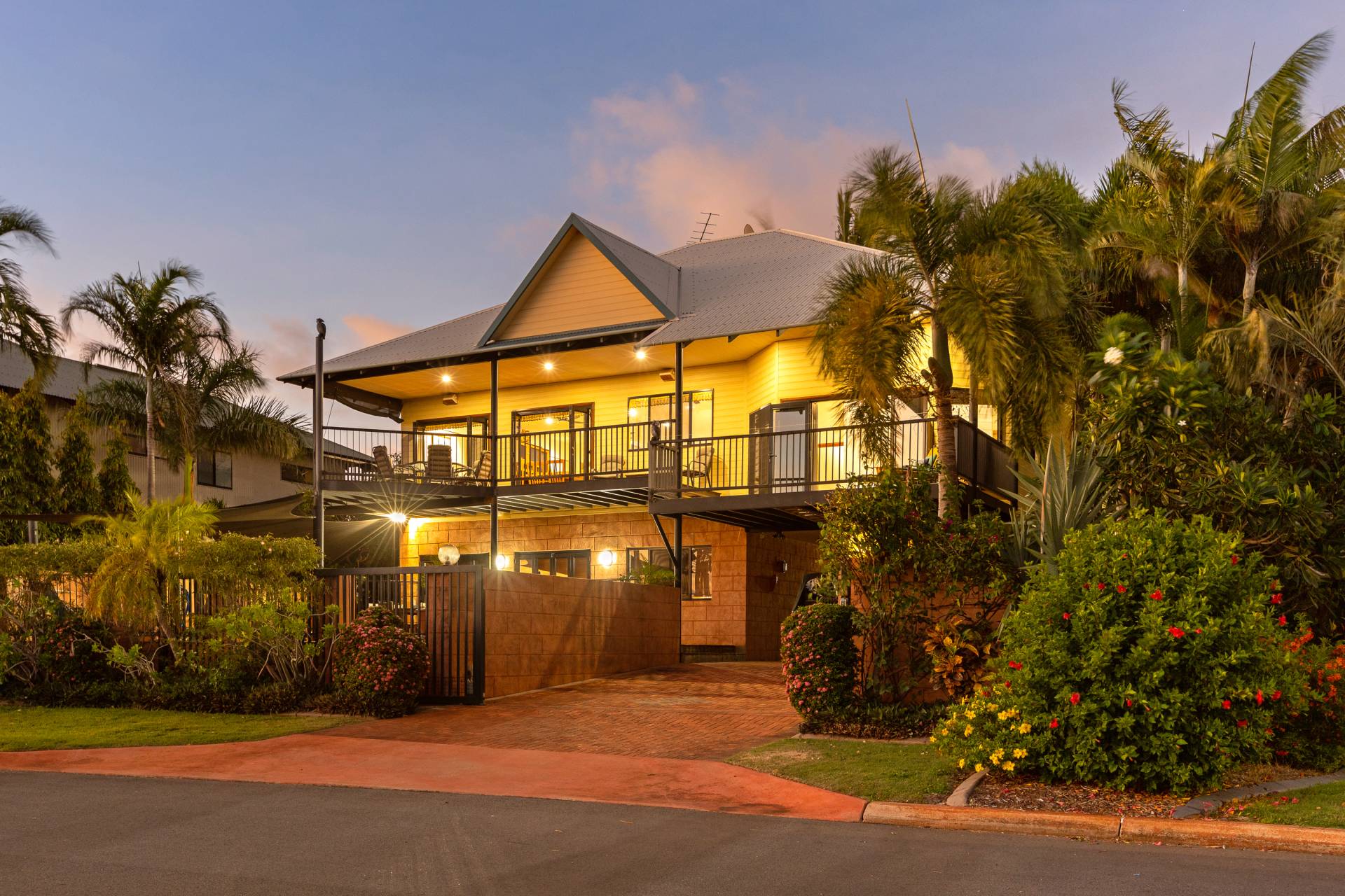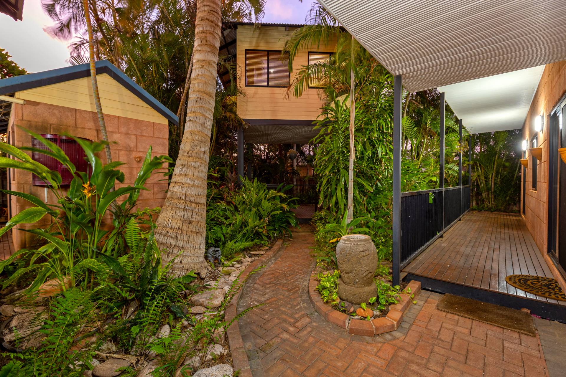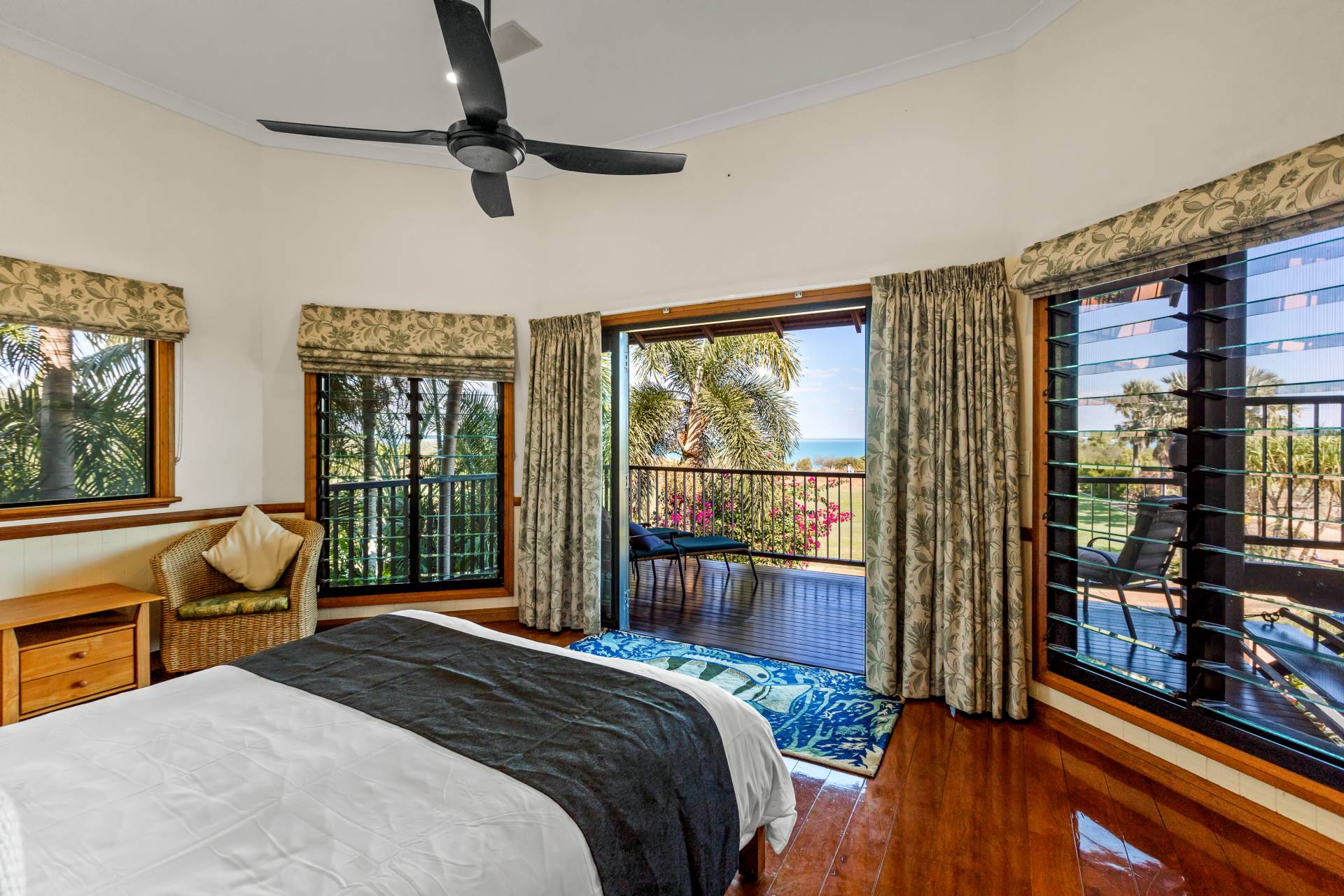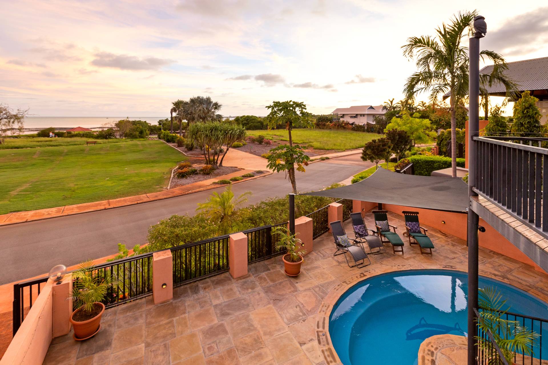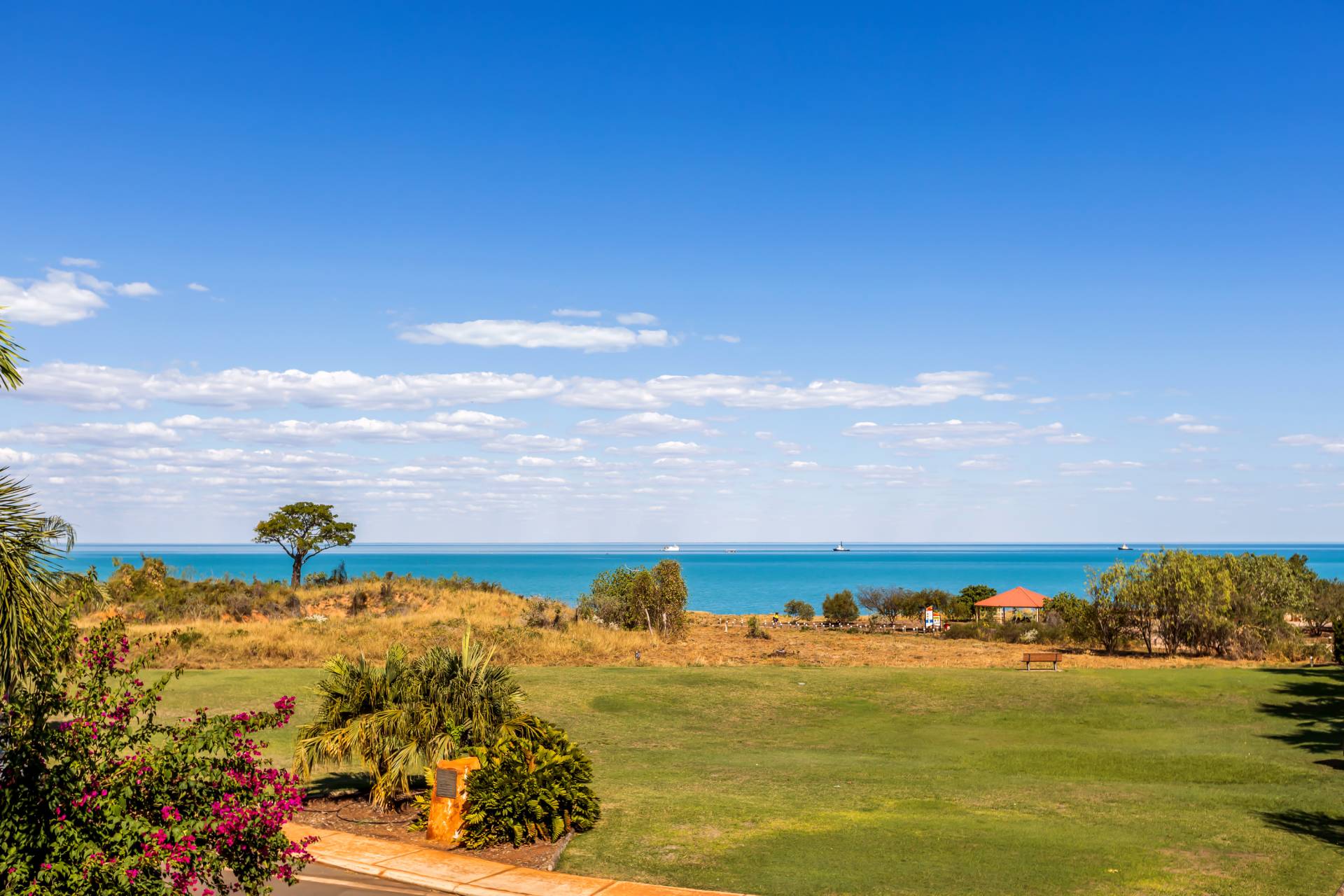 Wake up to the glorious view of the azure waters of Roebuck Bay! Life doesn’t get much better with 20 Demco Drive, Broome. Walk across the road and you are on the beach for an early morning stroll or enjoy a sunset drink on your own balcony.                                            Flaunting sprawling balconies and a lush, established garden, 20 Demco boasts a perfect blend of picturesque outdoor living and seclusion from the bustling town of Broome.             Enforced with a brick exterior, this 5x4 with an office is ideal for large families or buyers searching for the right property for a bed-and-breakfast. Matched with a spacious storeroom and ample parking space, the property has two entrances, one on the right of the property, and one on the left, allowing complete separation of the first and second floors of the property if so desired.