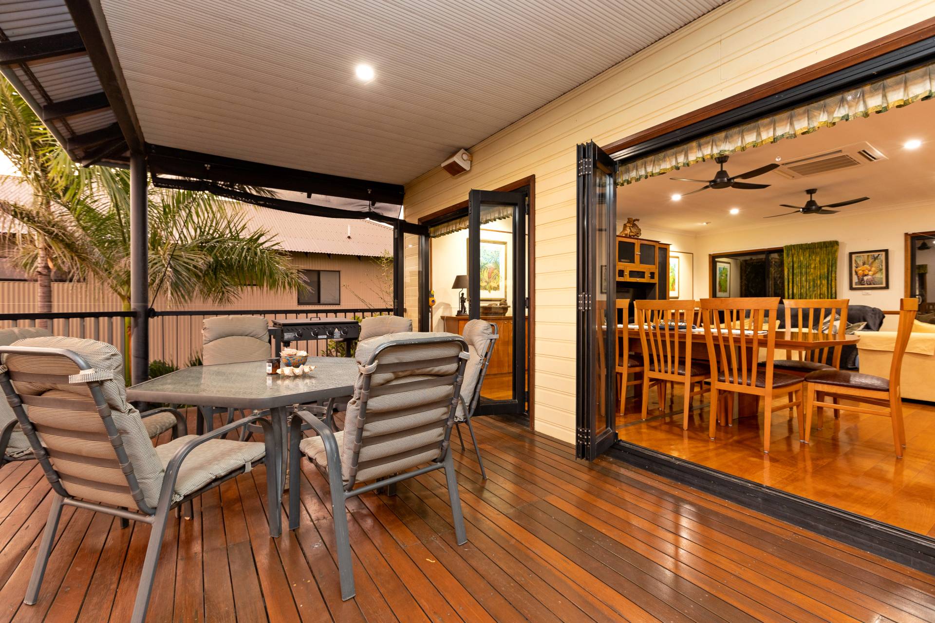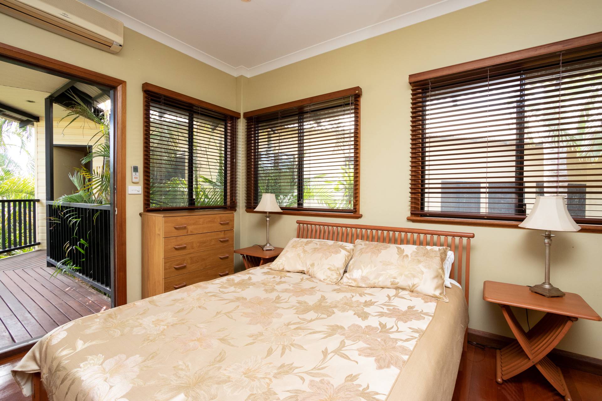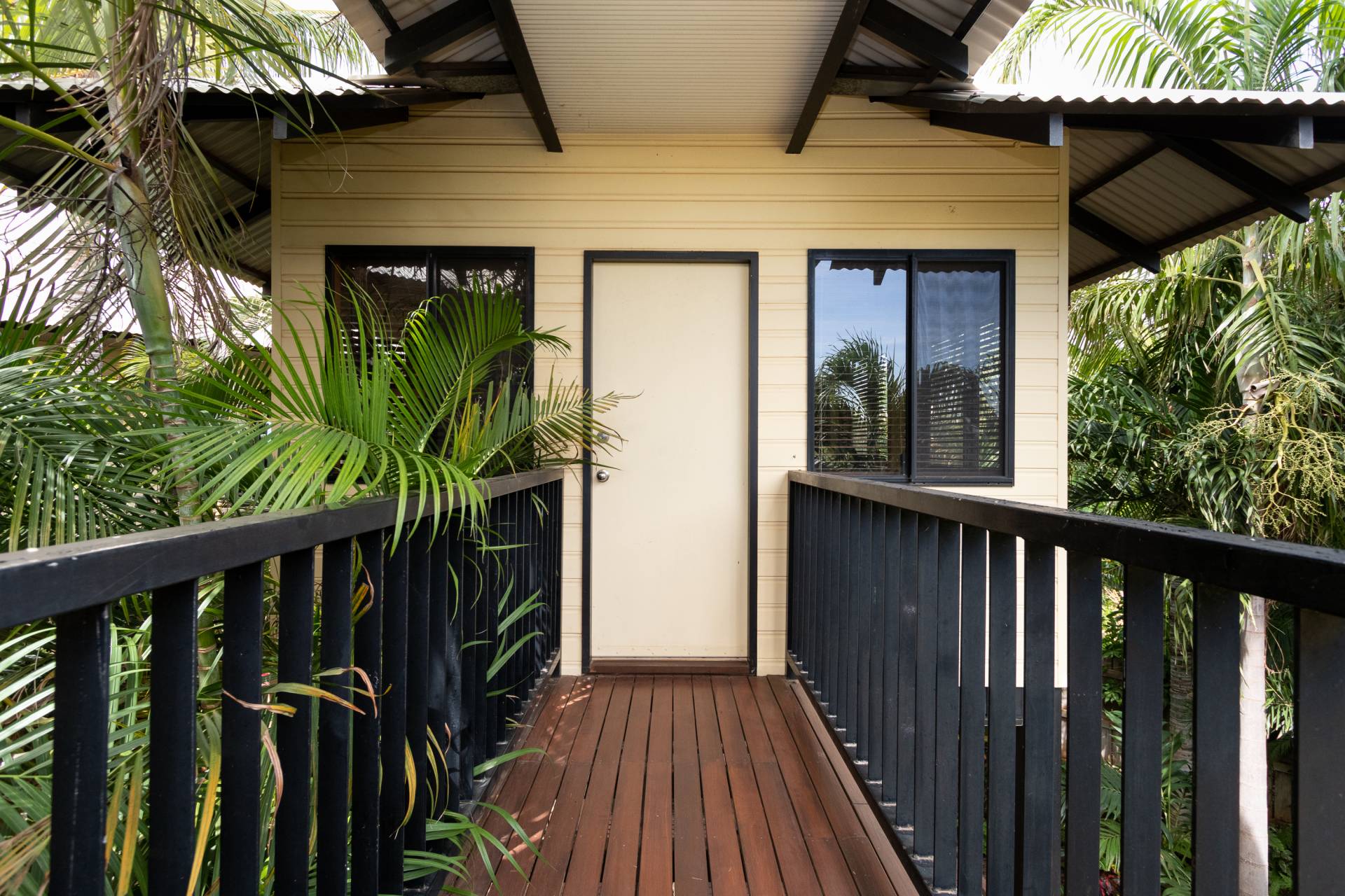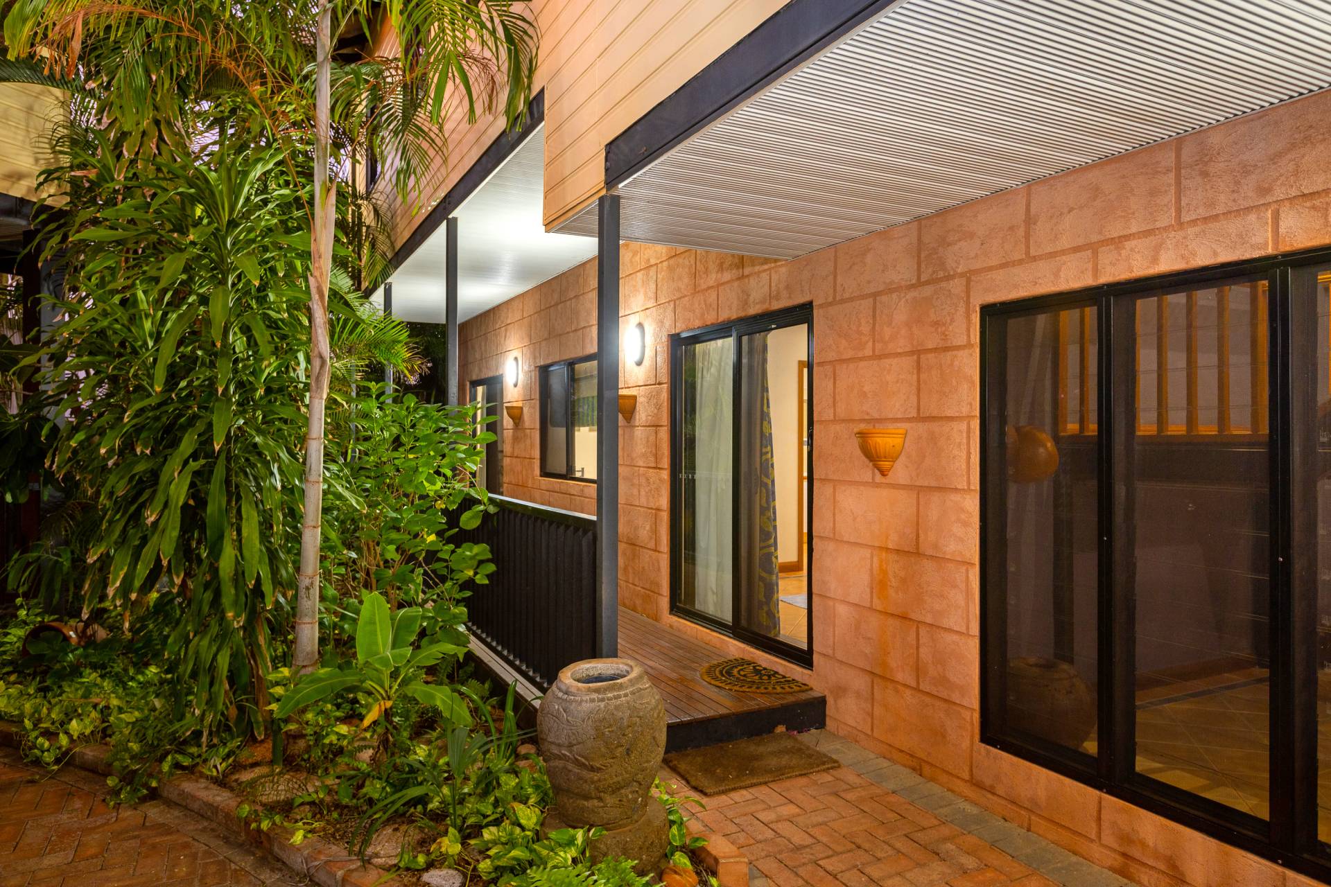 Wake up to the glorious view of the azure waters of Roebuck Bay! Life doesn’t get much better with 20 Demco Drive, Broome. Walk across the road and you are on the beach for an early morning stroll or enjoy a sunset drink on your own balcony.                                            Flaunting sprawling balconies and a lush, established garden, 20 Demco boasts a perfect blend of picturesque outdoor living and seclusion from the bustling town of Broome.             Enforced with a brick exterior, this 5x4 with an office is ideal for large families or buyers searching for the right property for a bed-and-breakfast. Matched with a spacious storeroom and ample parking space, the property has two entrances, one on the right of the property, and one on the left, allowing complete separation of the first and second floors of the property if so desired.