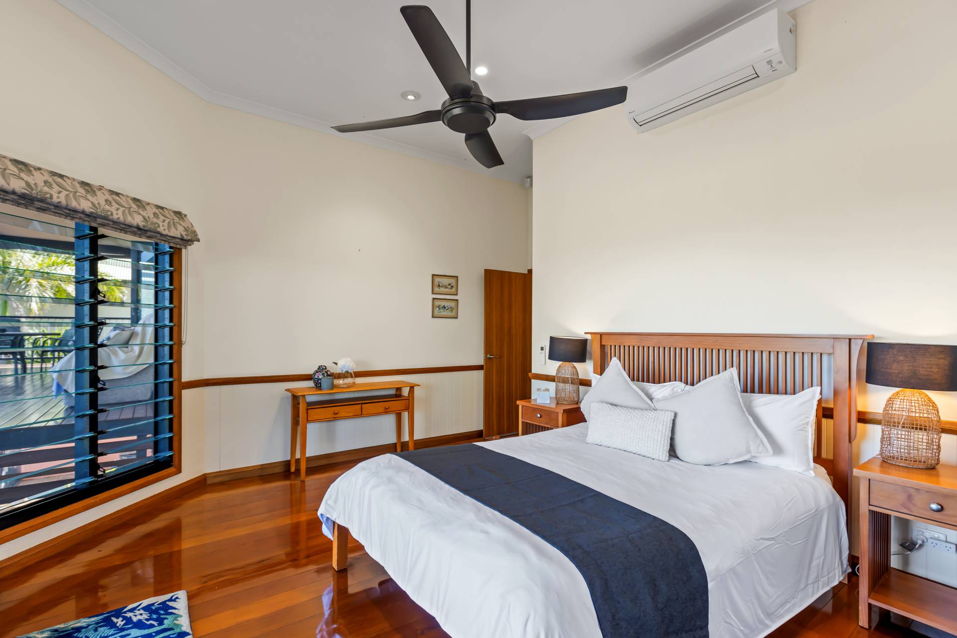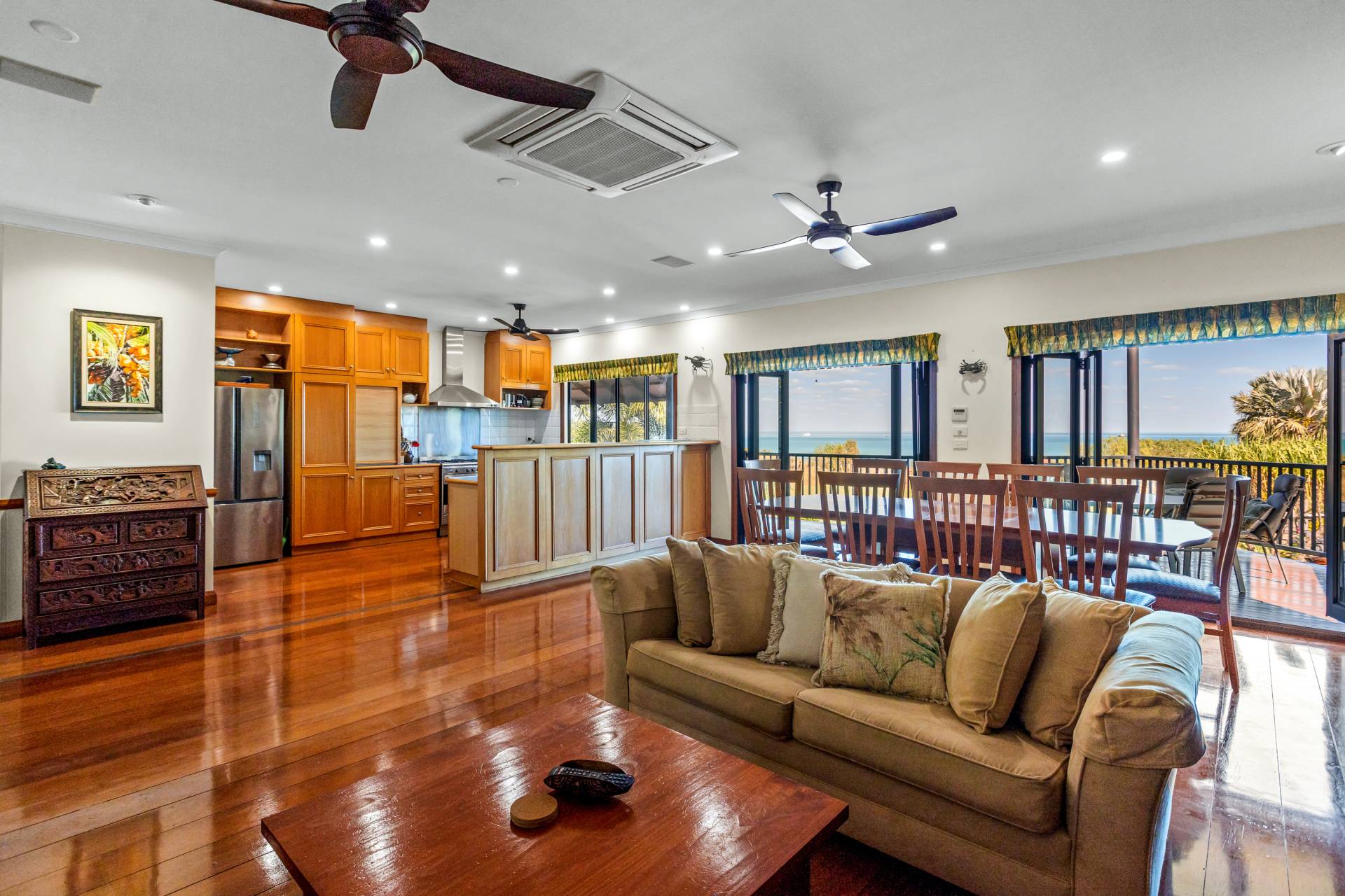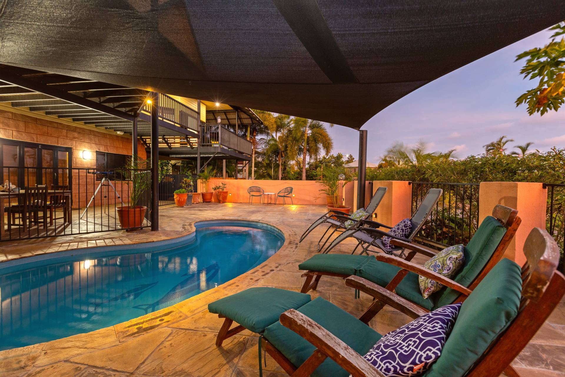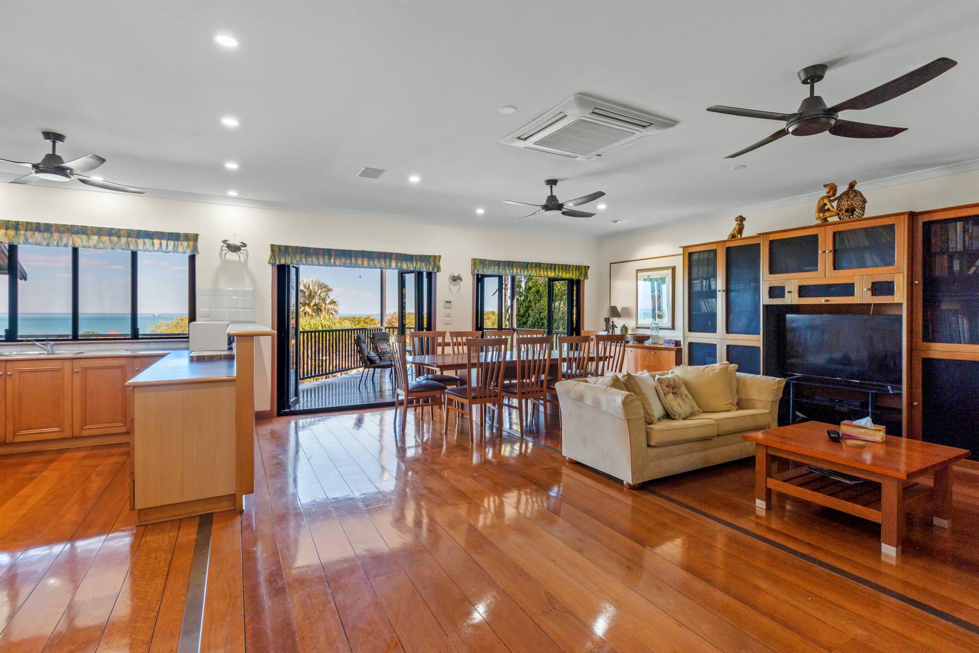 Both upstairs and downstairs living areas are open plan, forming a hub of activity on both floors of the home. With fully equipped kitchens, dining space and living space, social interaction becomes a component of the house. The second-floor kitchen is supplied with a new oven and its own Cool-room, capable of adjusting its temperature to accommodate any food storage needs. Let’s mention the views of Roebuck Bay are glorious from the first floor and second floor of the property. The first-floor kitchen/living area opens out onto a grand paved pool area surrounded by a new pool fence - passed pool inspection APRIL 2024. Further upgrades include all lighting changed to LED and fans - Caloundra 3 blade.
