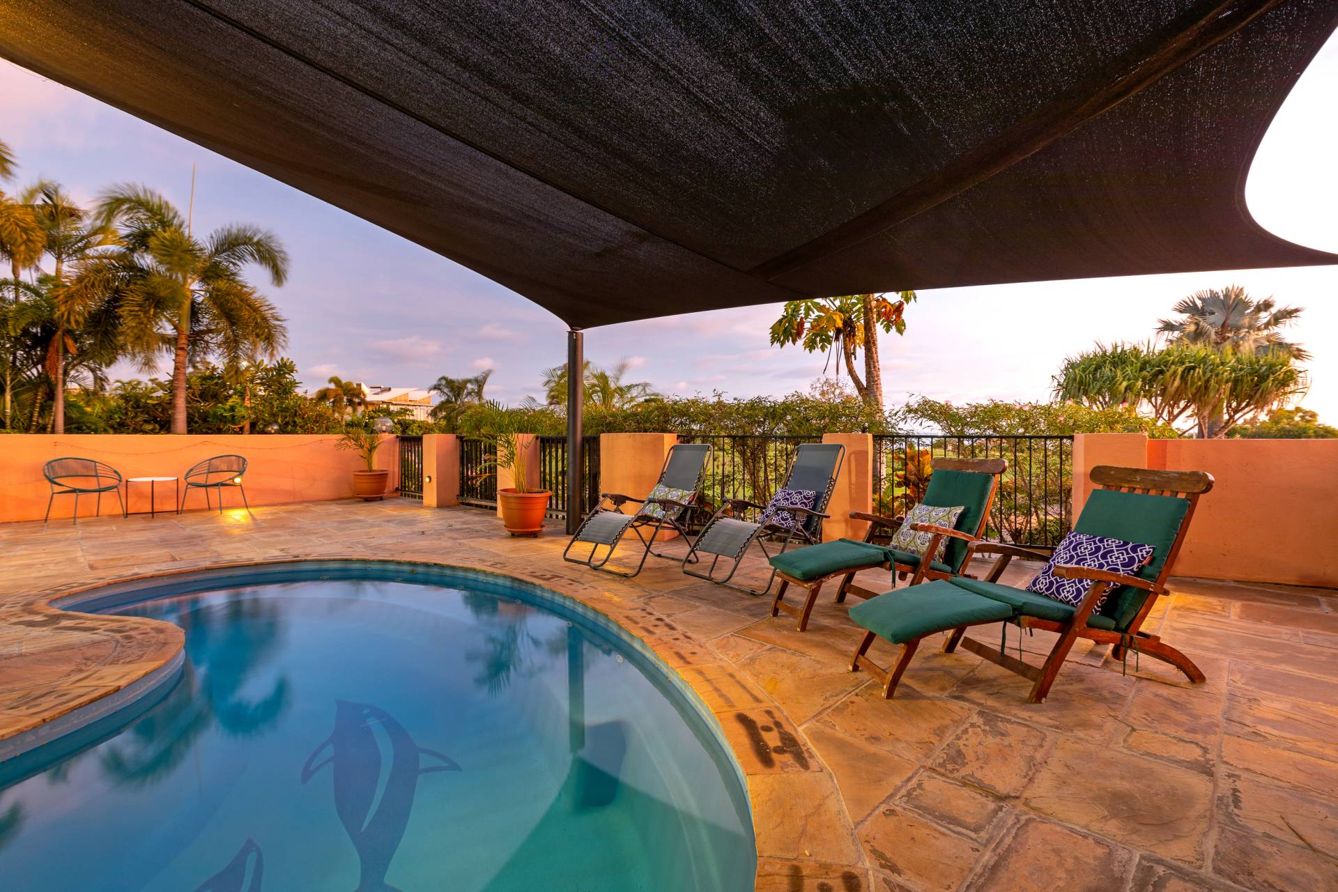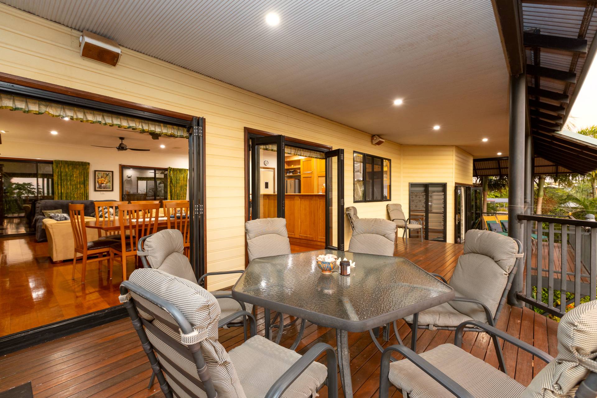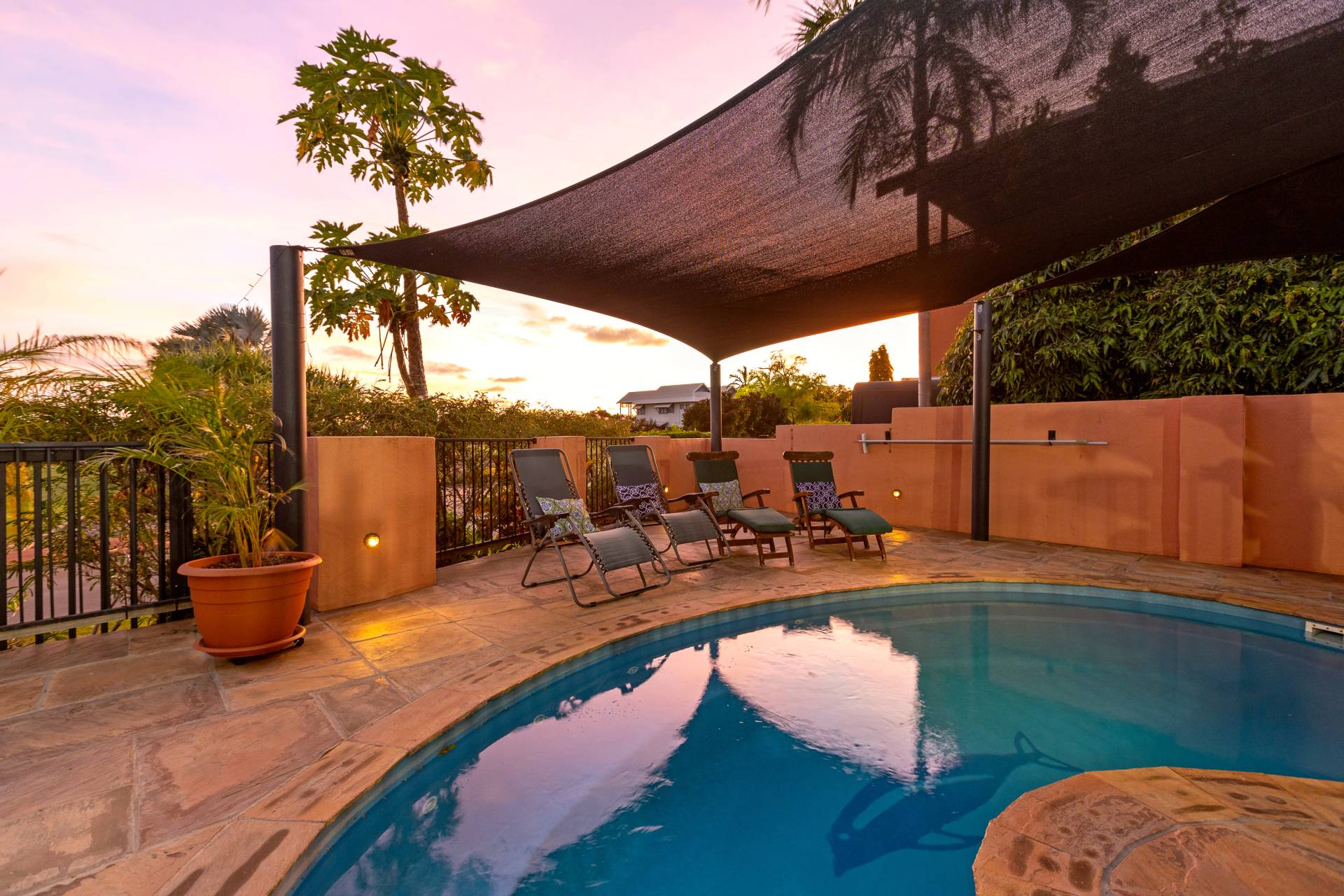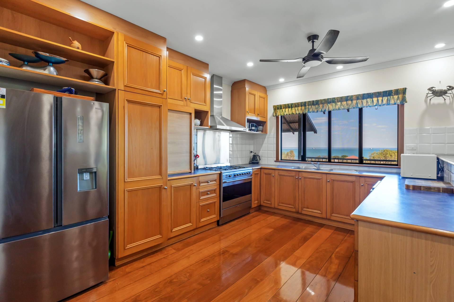 Both upstairs and downstairs living areas are open plan, forming a hub of activity on both floors of the home. With fully equipped kitchens, dining space and living space, social interaction becomes a component of the house. The second-floor kitchen is supplied with a new oven and its own Cool-room, capable of adjusting its temperature to accommodate any food storage needs. Let’s mention the views of Roebuck Bay are glorious from the first floor and second floor of the property. The first-floor kitchen/living area opens out onto a grand paved pool area surrounded by a new pool fence - passed pool inspection APRIL 2024. Further upgrades include all lighting changed to LED and fans - Caloundra 3 blade.