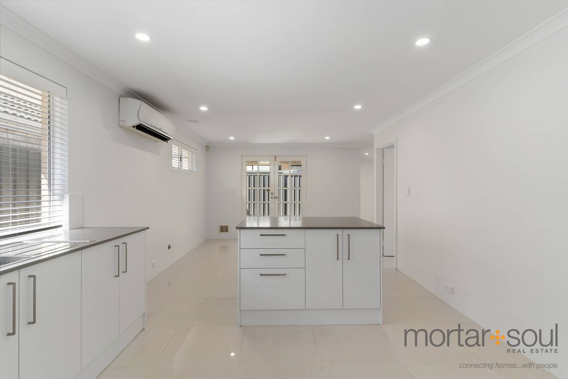 The impeccably-tiled open-plan living and dining area has split-system air-conditioning and a gas bayonet of its own, also playing host to a modernised kitchen with space for a small table and chairs, sparkling stone bench tops, a floating central island, feature subway-tile splashbacks, double sinks, a stainless-steel range hood, IAG gas-cooktop and oven appliances and seamless double-French-door access out to a pitched rear patio-entertaining courtyard that is brilliant in its privacy. A tiled second lounge room – or an extension of the main open-plan area – sits adjacent and has its own outdoor access to the alfresco, for both practicality and functionality.