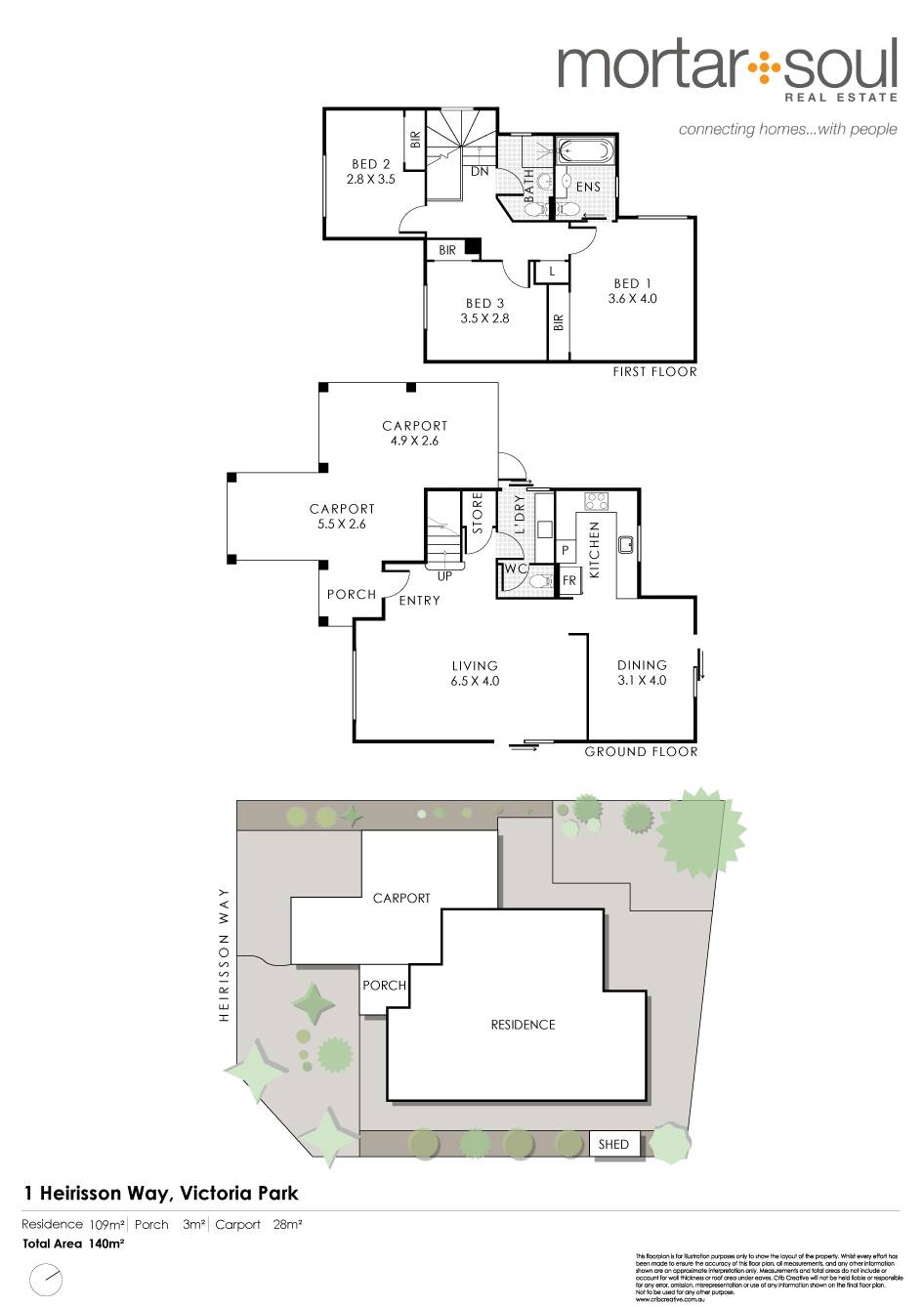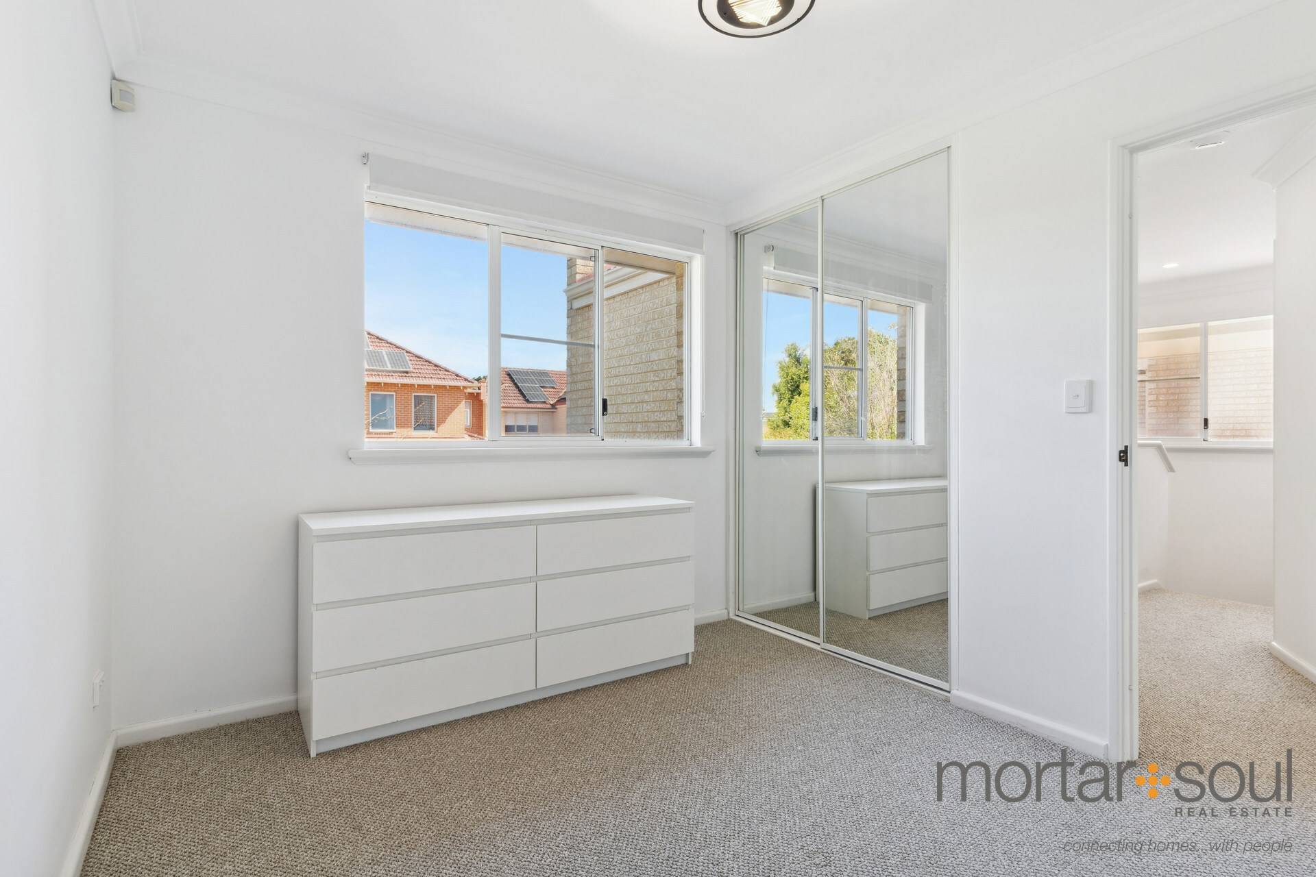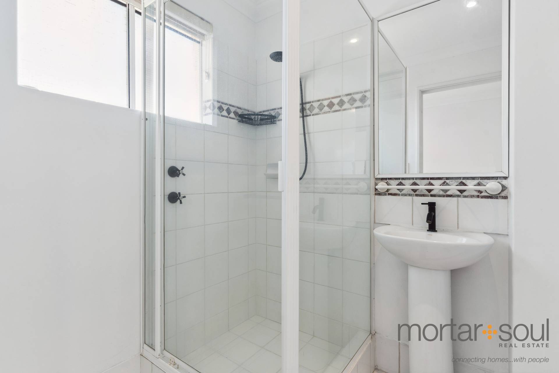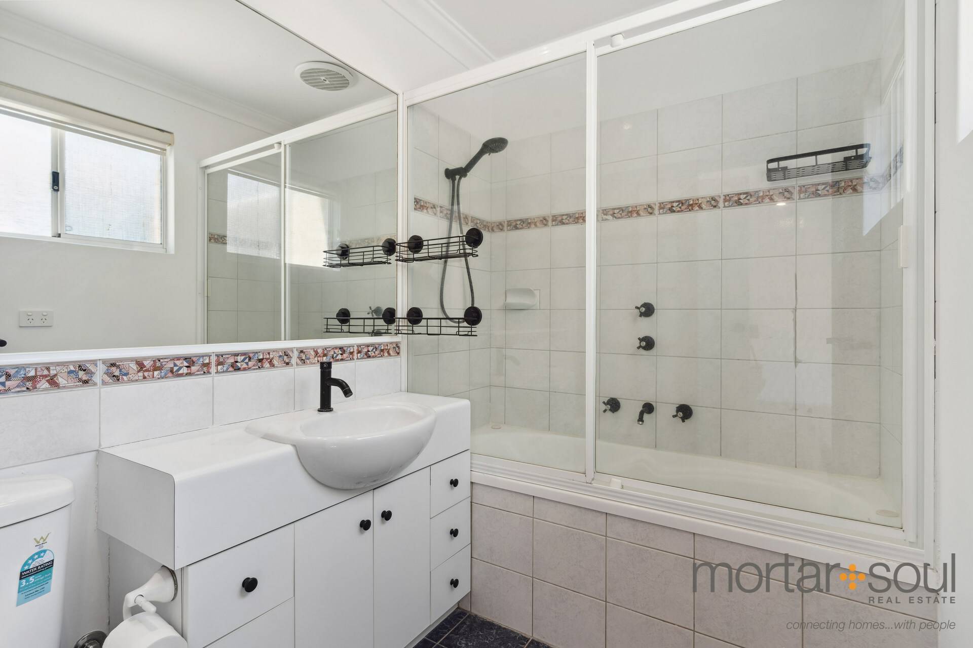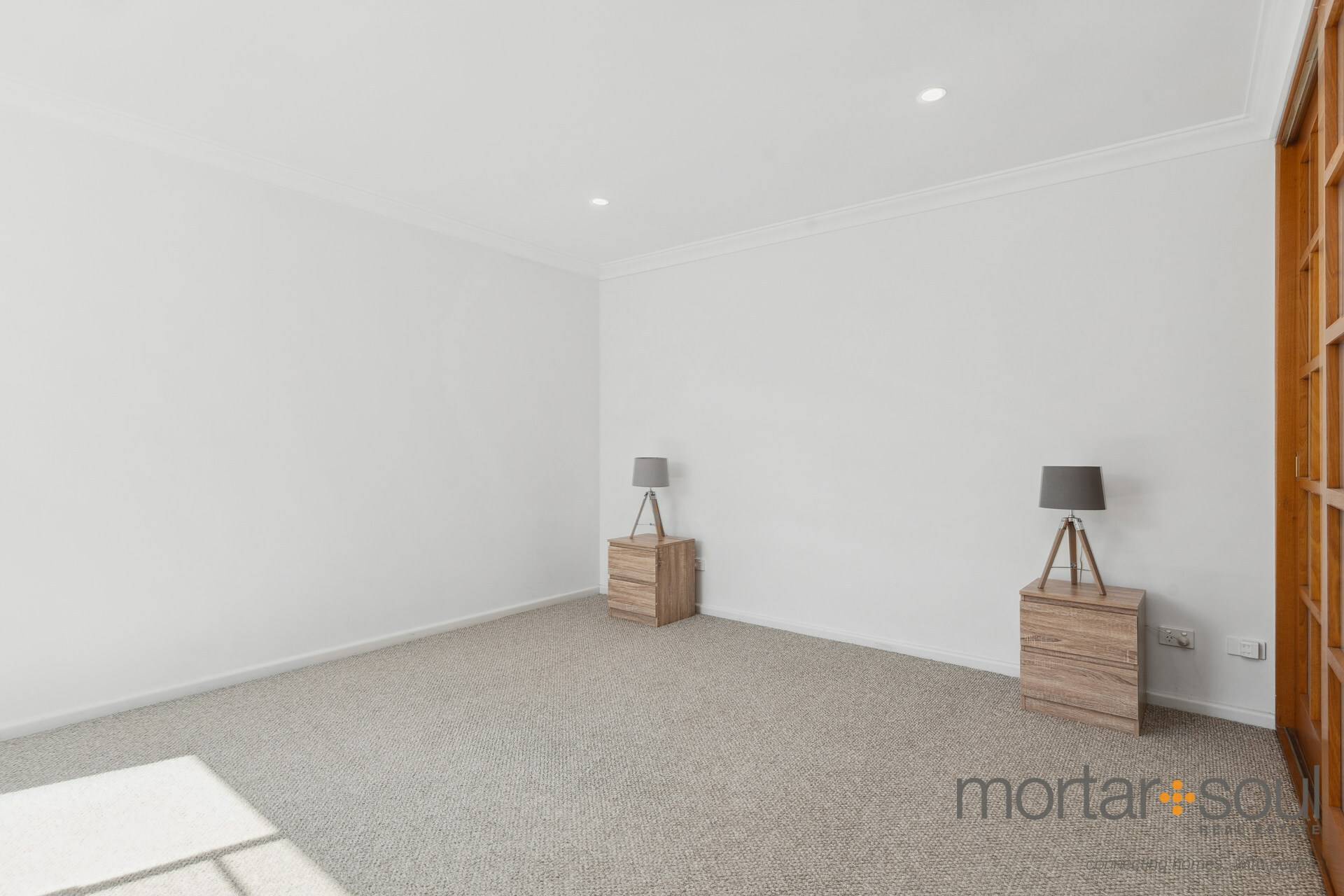Upstairs, the master-bedroom suite is huge and features built-in wardrobes and an intimate ensuite bathroom with a toilet, vanity, bathtub and showerhead. Both spare bedrooms have full-height mirrored built-in robes and are serviced by a shower and vanity in the separate main bathroom.