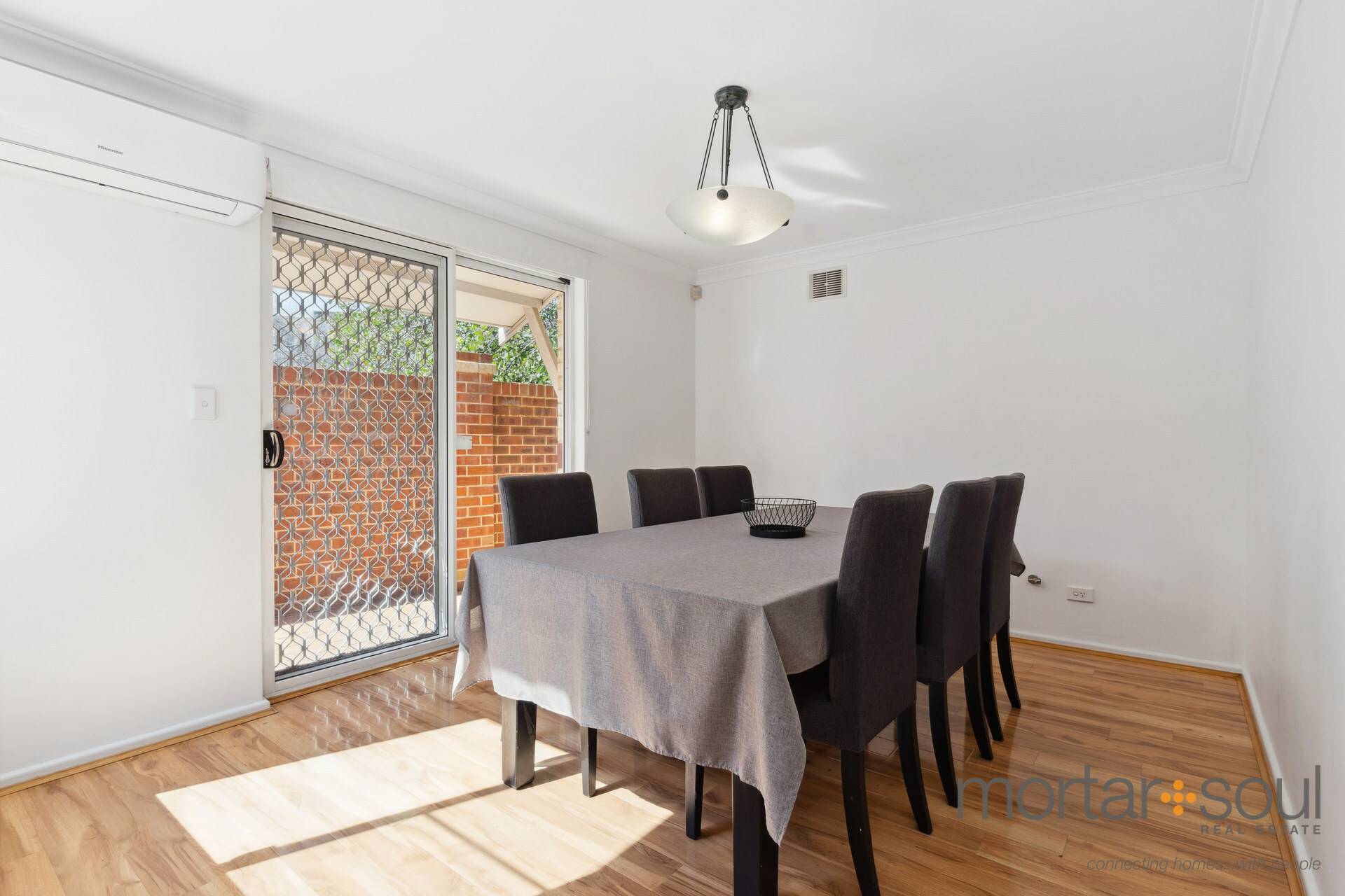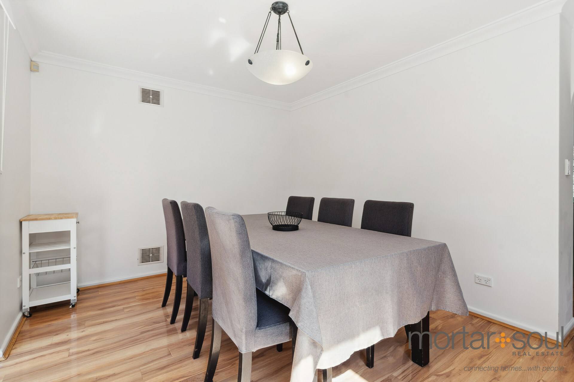 Back inside, a separate dining area is kept comfortable by its own split-system air-conditioning unit and sits adjacent to a tiled and updated kitchen with a dishwasher, modern stainless-steel range-hood, gas-cooktop and under-bench-oven appliances, pantry storage and more.