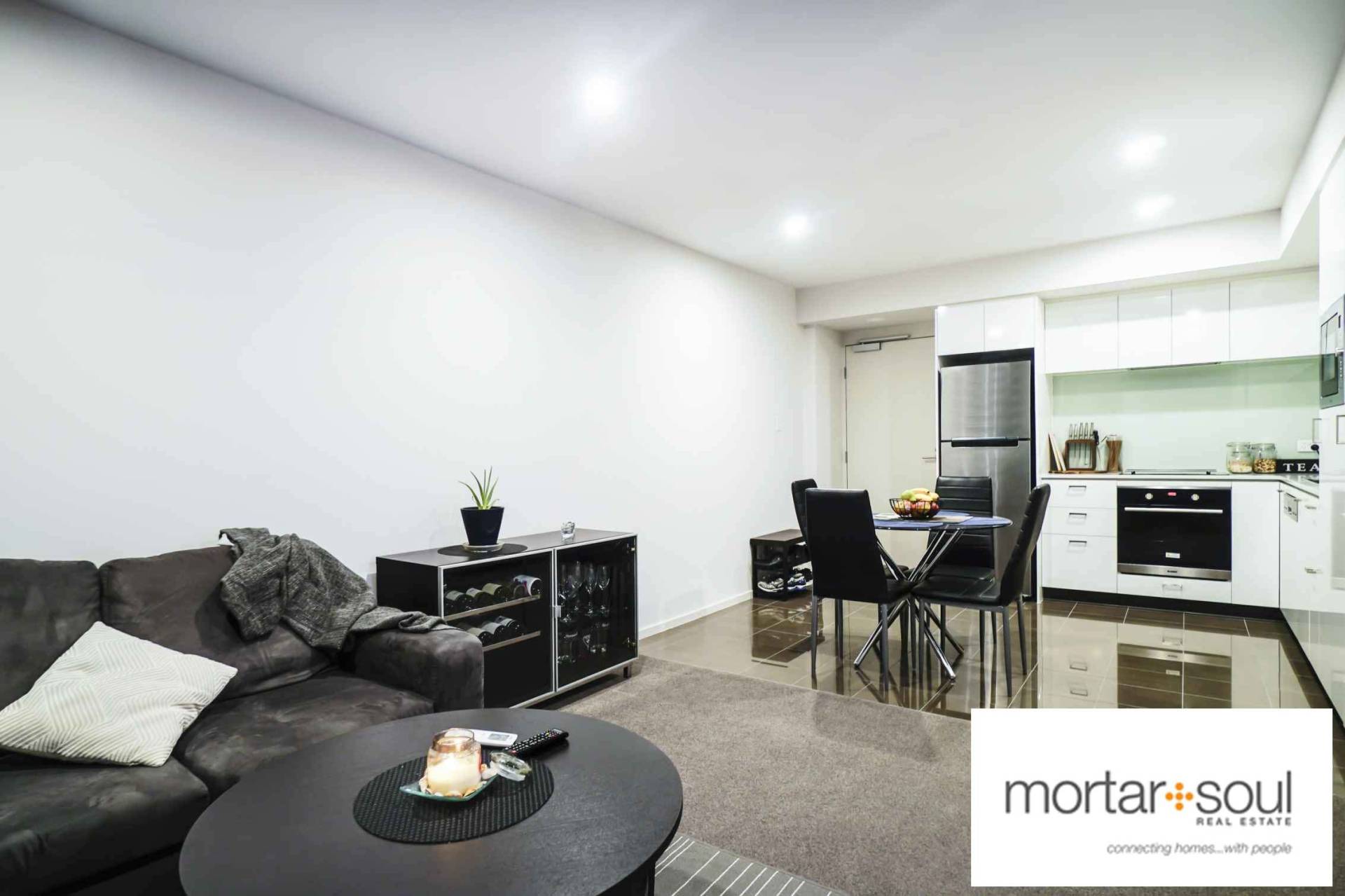 Welcoming you inside the open-plan apartment is a crisply-tiled kitchen and dining area, boasting high-end European Blanco appliances - including a cooktop, oven, range hood, semi-integrated dishwasher and bonus integrated microwave. Like the residence’s sole bedroom, the adjacent living room is carpeted for comfort and extends out to a private and tranquil alfresco balcony for intimate entertaining.