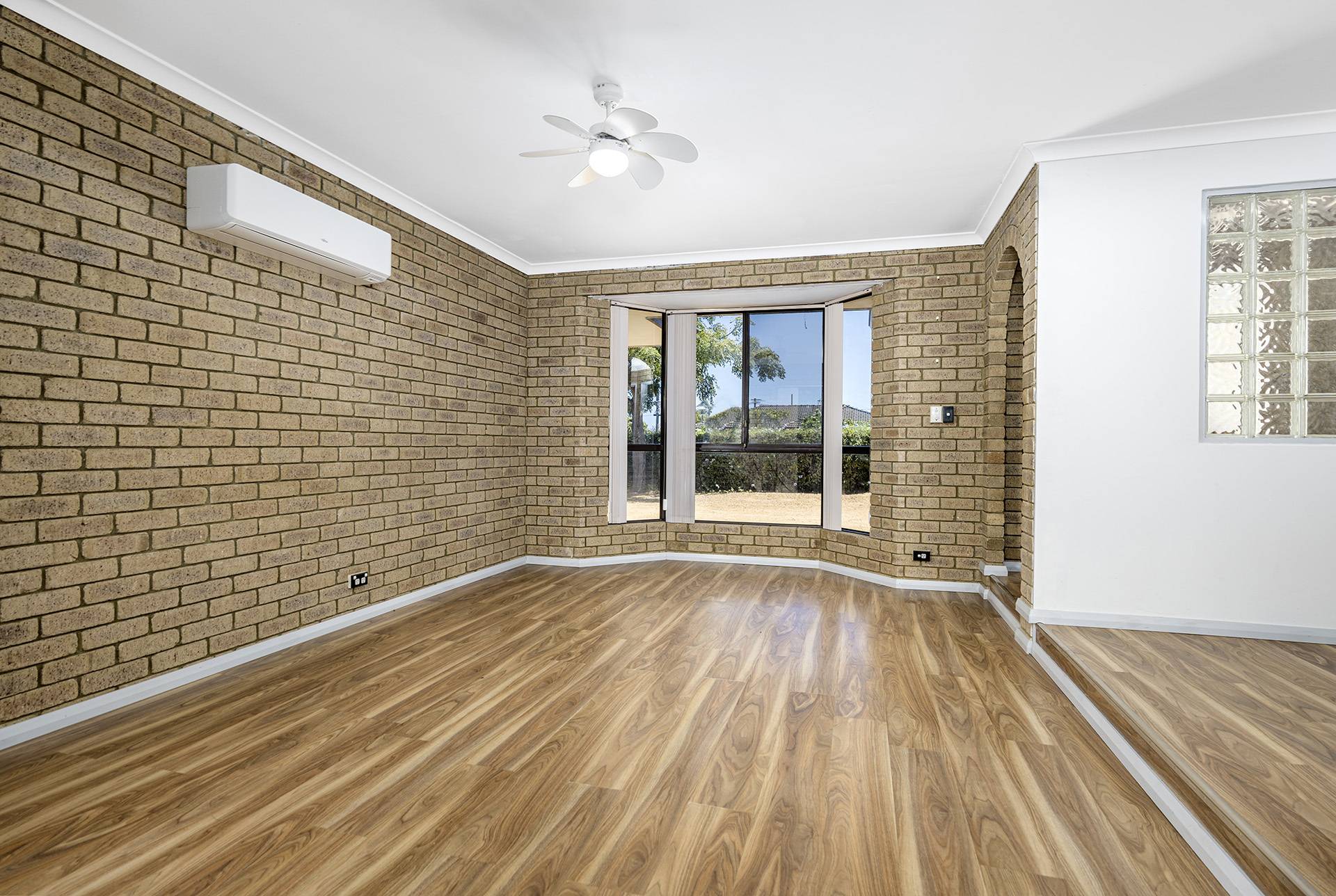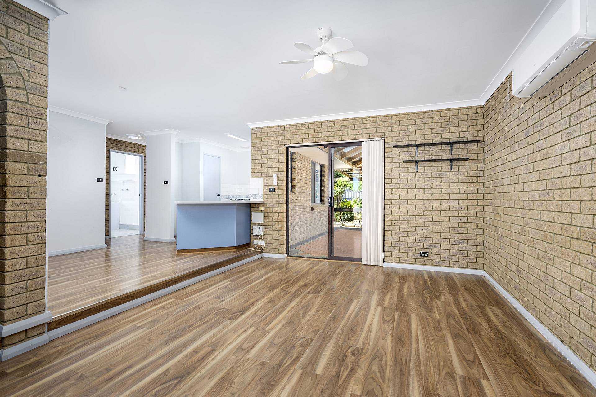 Boasting a functional layout with plenty of natural light, it offers a comfortable living space and rental opportunity for families, couples or down-sizers alike. A large and sunken front living room welcomes you inside with its charming brickwork, split-system air-conditioning and ceiling fan, whilst overlooked by the open-plan dining and kitchen area.