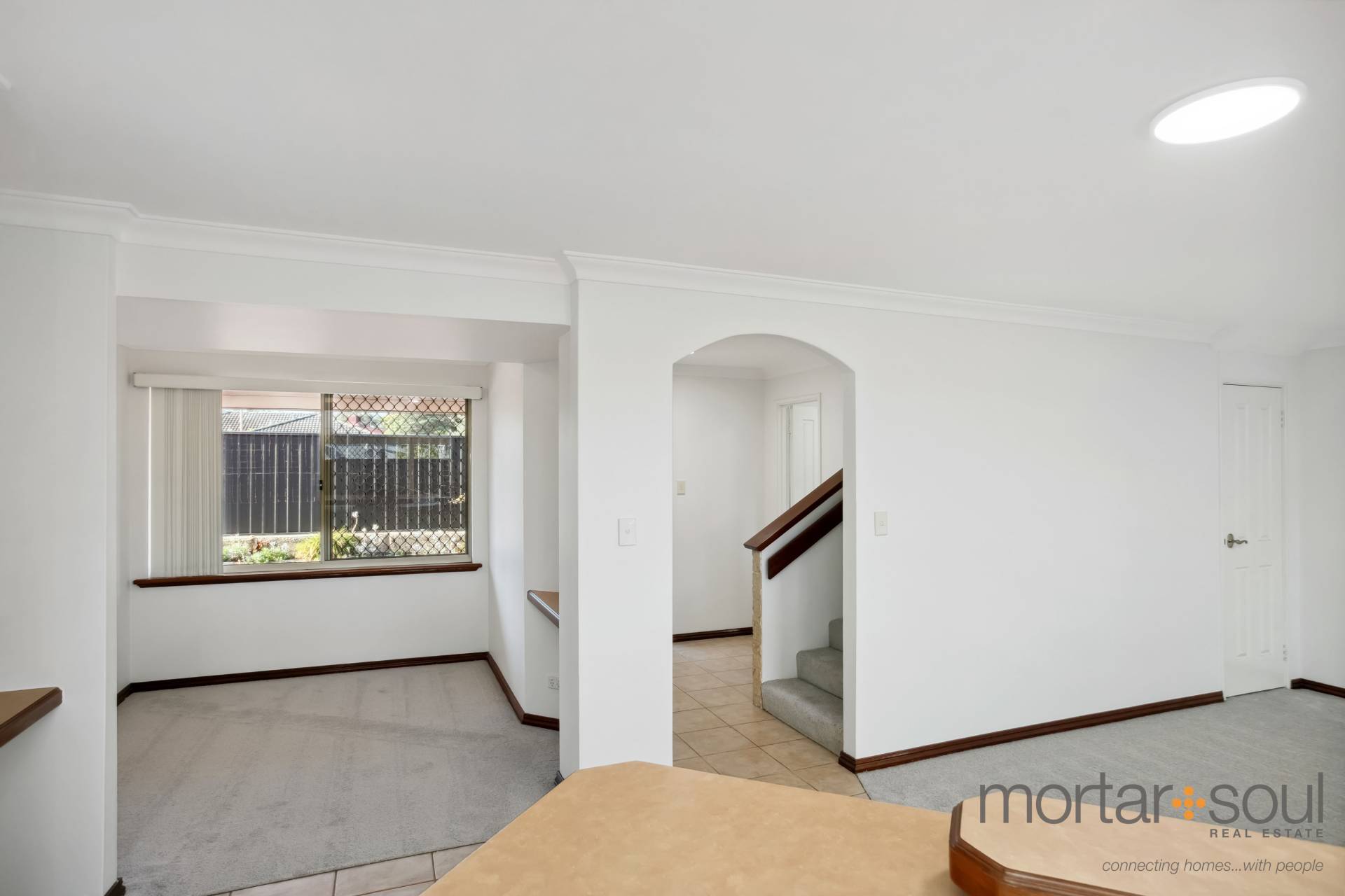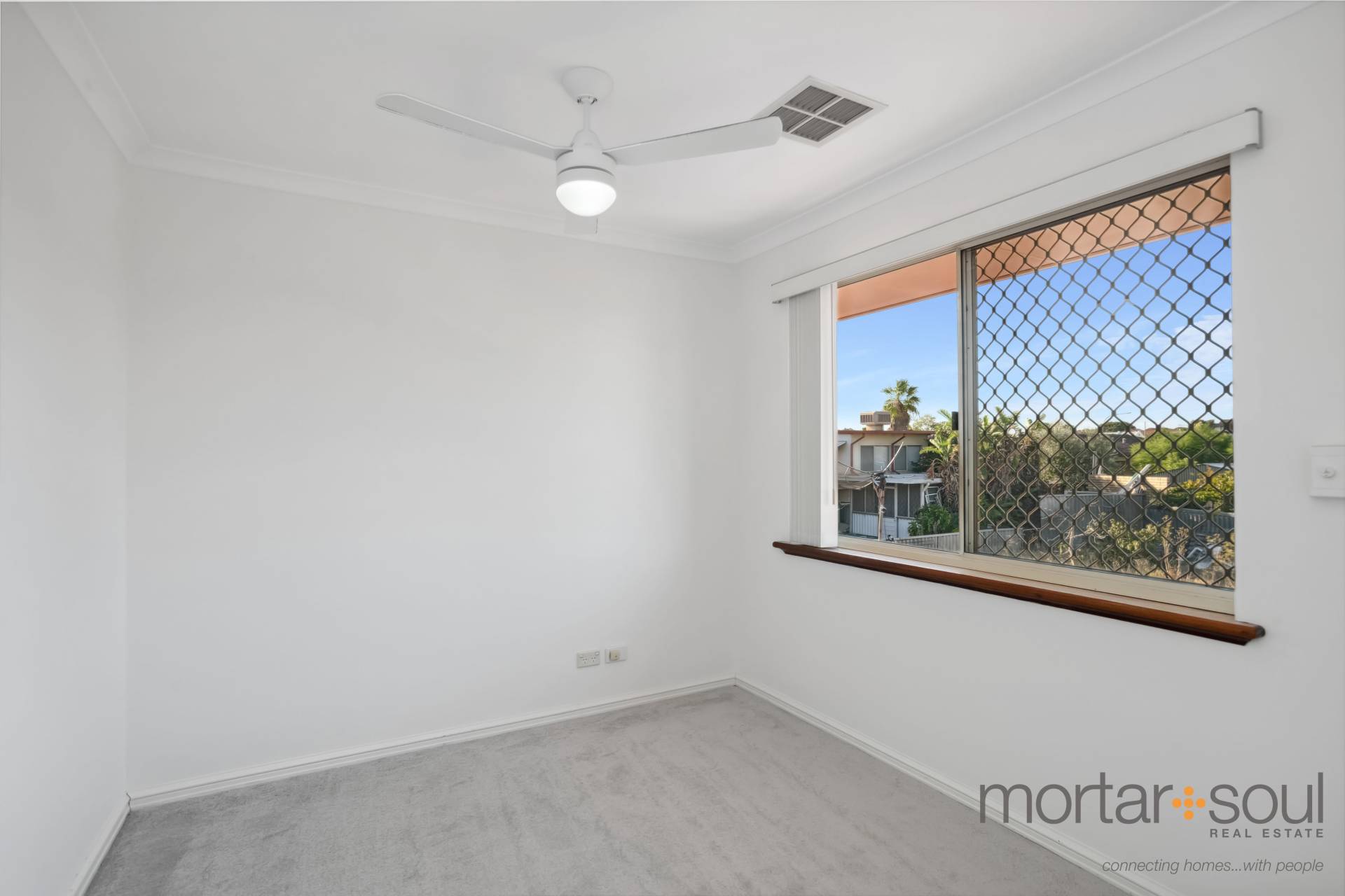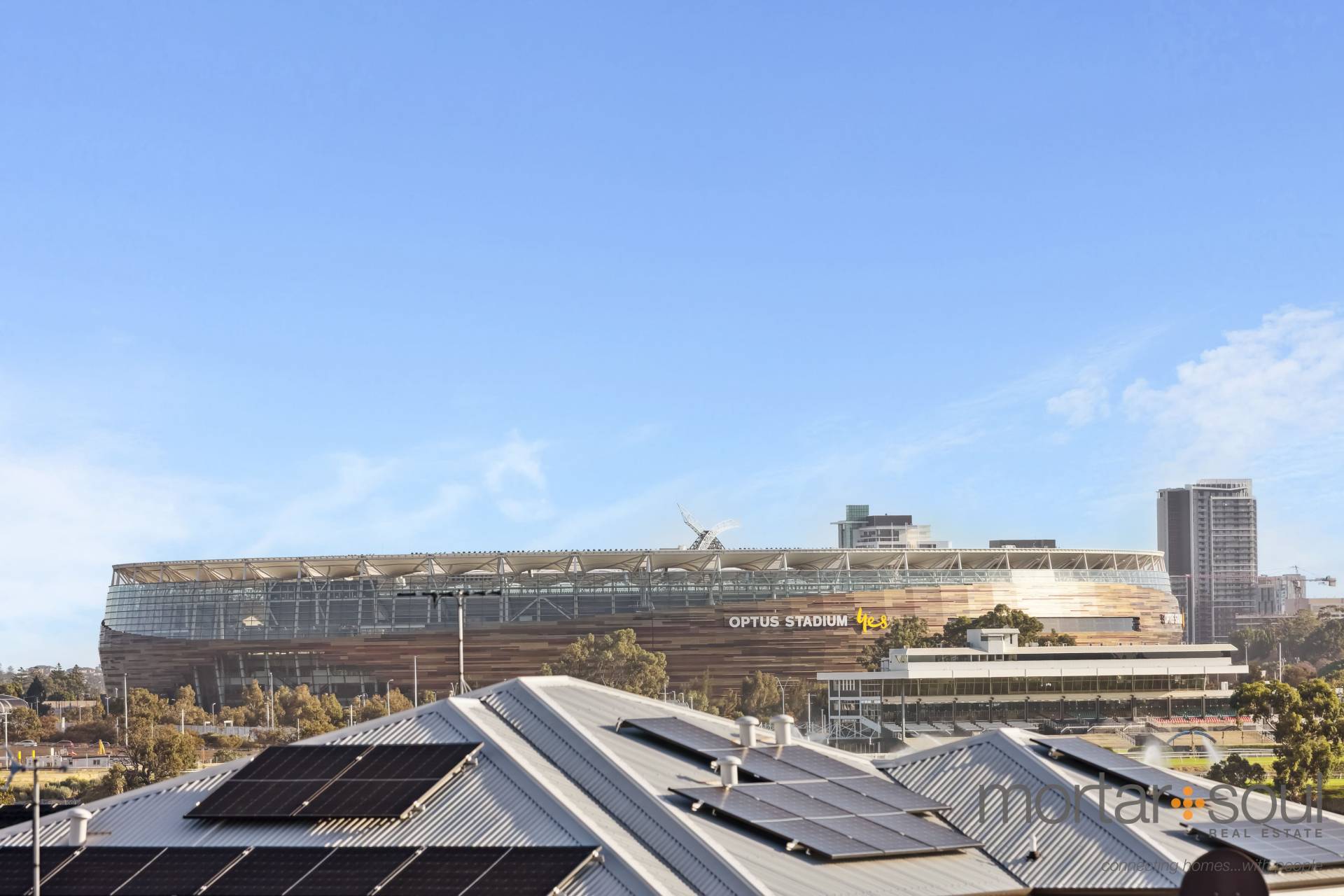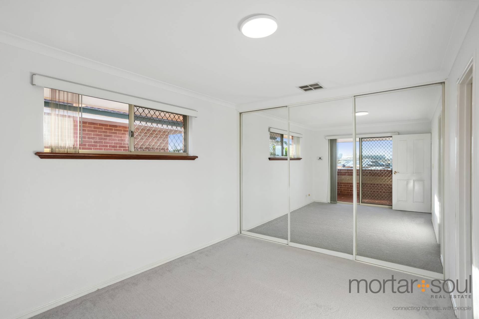 Upstairs, stunning city-skyline and Optus Stadium views from the most delightful of covered balconies is simply an added bonus. The sweeping vista is also prevalent from within the connecting retreat, that has its own gas bayonet for winter heating. A sleek white main bathroom caters for everybody’s personal needs in the form of a shower and separate bath, whilst the master suite is the obvious pick of the bedrooms – complete with direct balcony access, mirrored sliding doors compliment the built-in wardrobe, finished with an intimate ensuite with shower, vanity and toilet access.