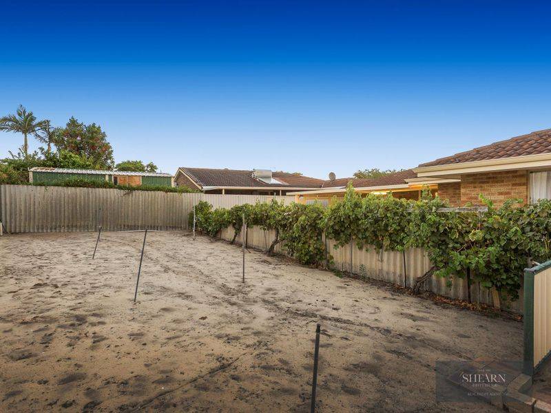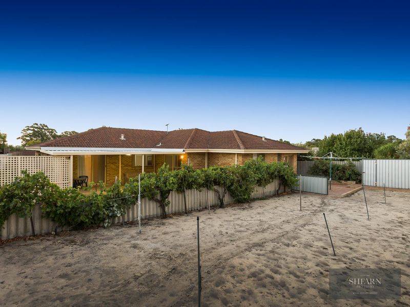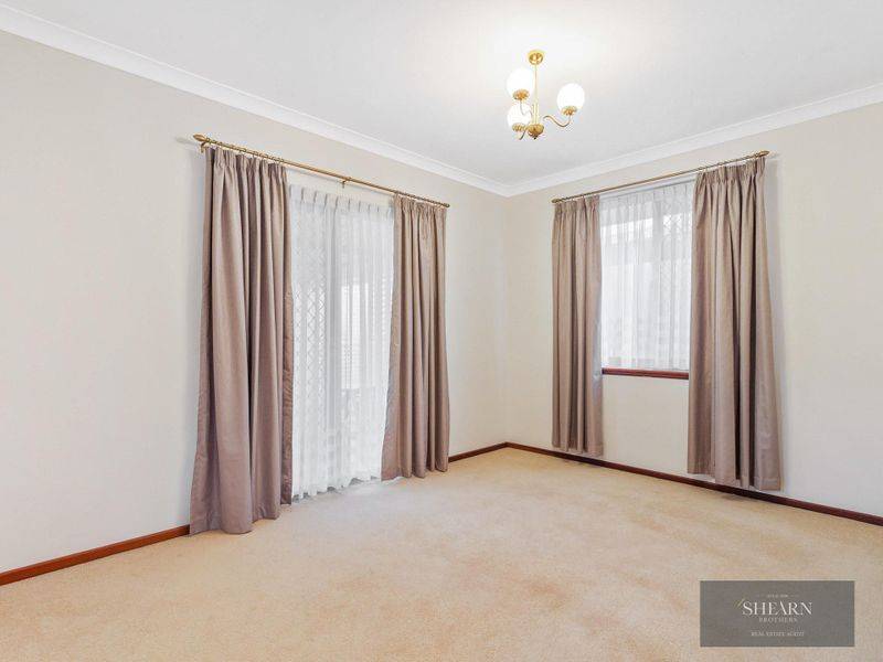 Separate from the minor sleeping quarters and nestled at the front of the household is a newly-carpeted master-bedroom suite that boasts full-length built-in wardrobe space, alongside a private ensuite bathroom with its own shower and toilet. Also outdoors is a paved courtyard, a beautiful grapevine, a garden shed, low-maintenance reticulated gardens and plenty of room for a future swimming pool or vegetable patch.