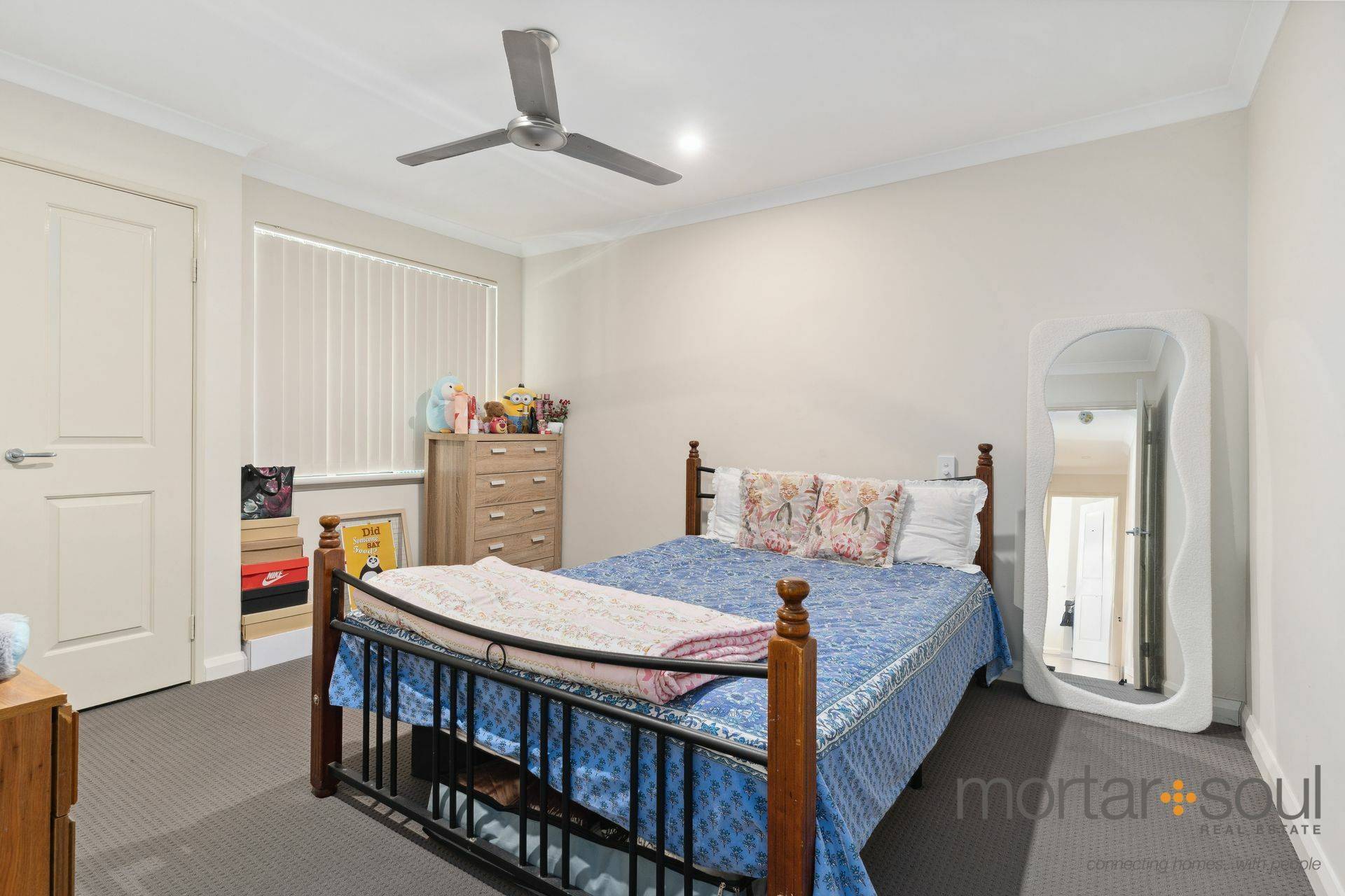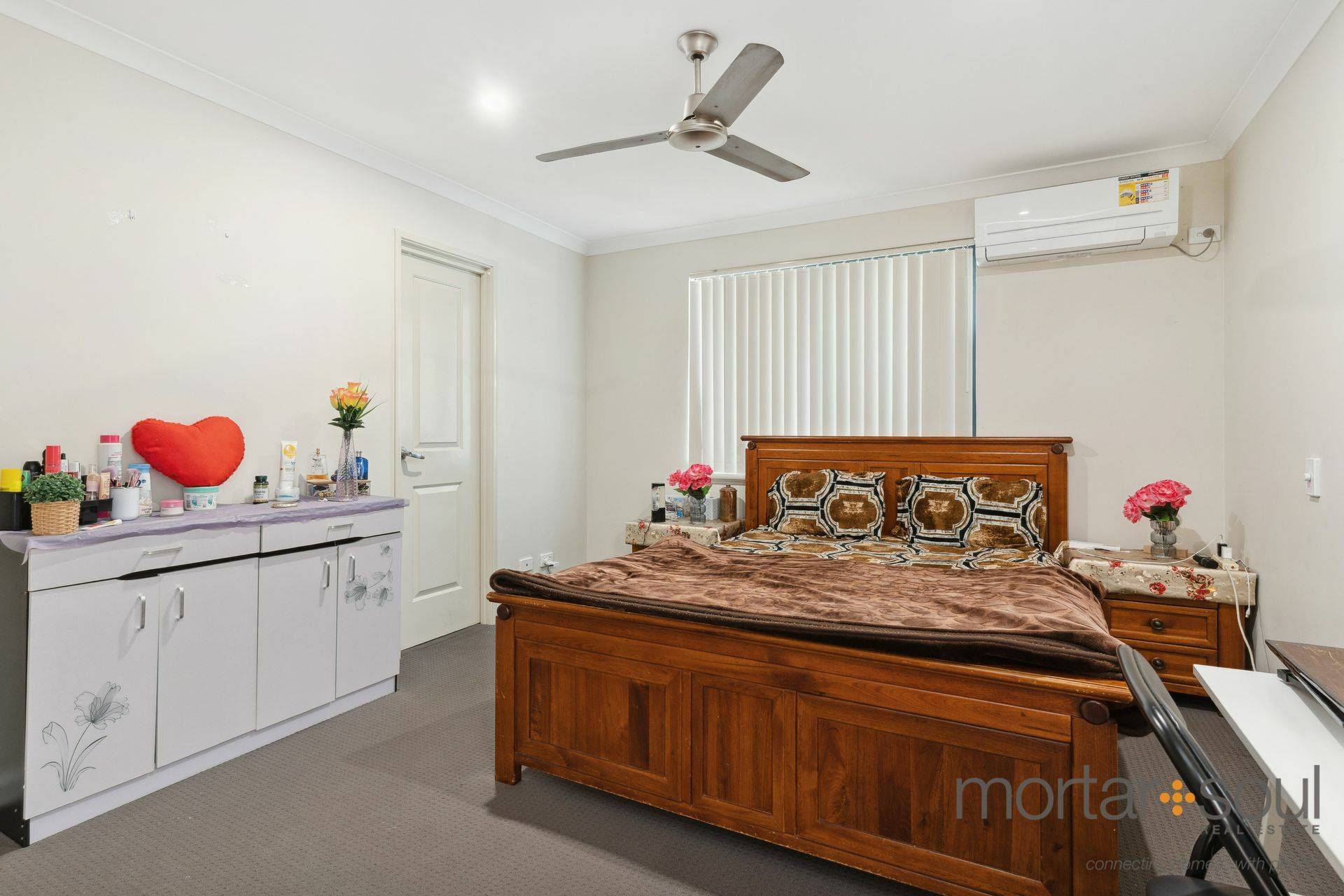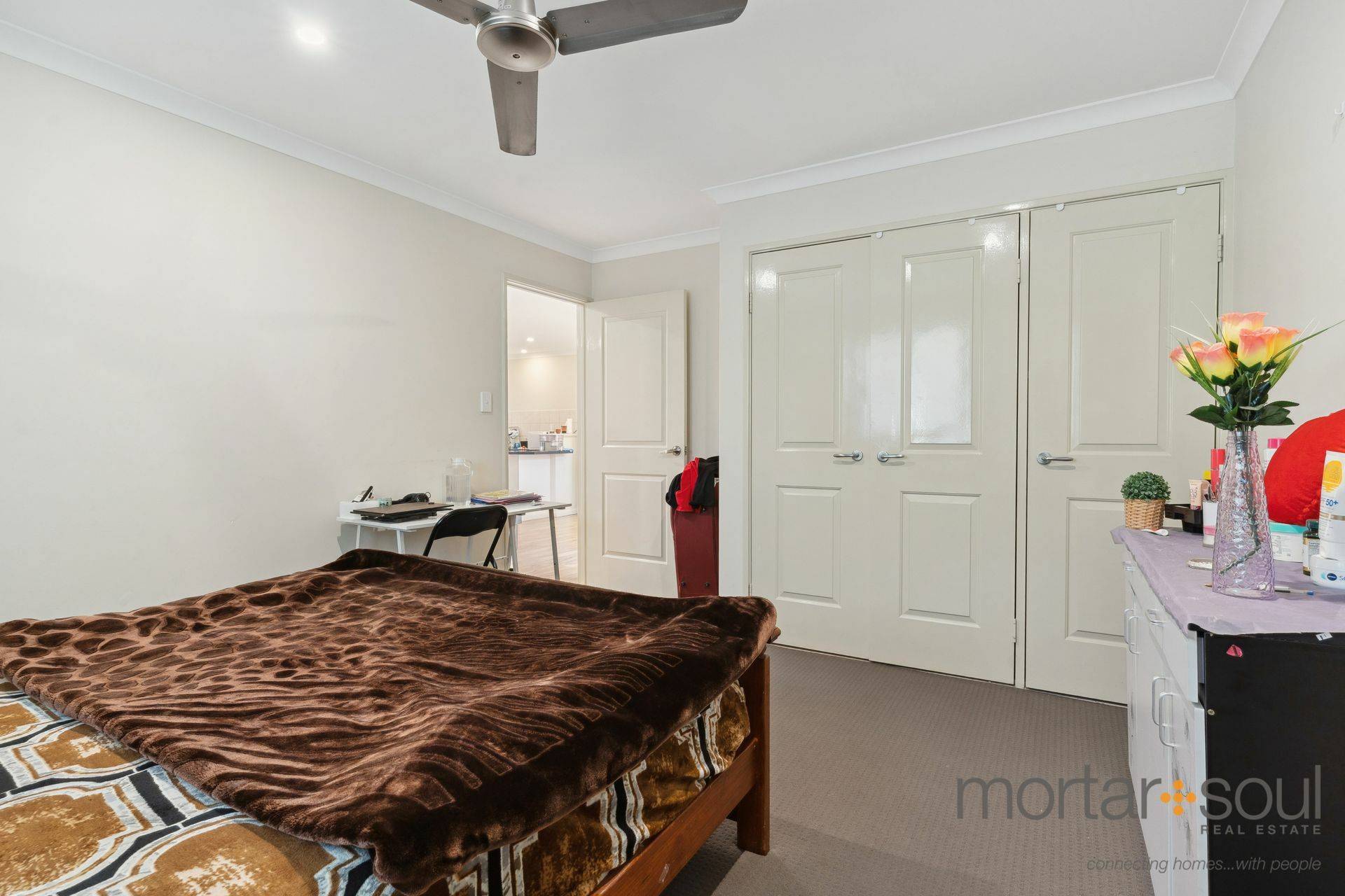 Back inside, all three bedrooms boast built-in wardrobes and ceiling fans – inclusive of a larger master suite that also comprises of a connecting ensuite bathroom with a shower, vanity and toilet. In between the two spare bedrooms sit a practical main bathroom (with a shower and separate bath), a separate second toilet and an efficient laundry with a linen cupboard, under-bench storage and side access for drying.