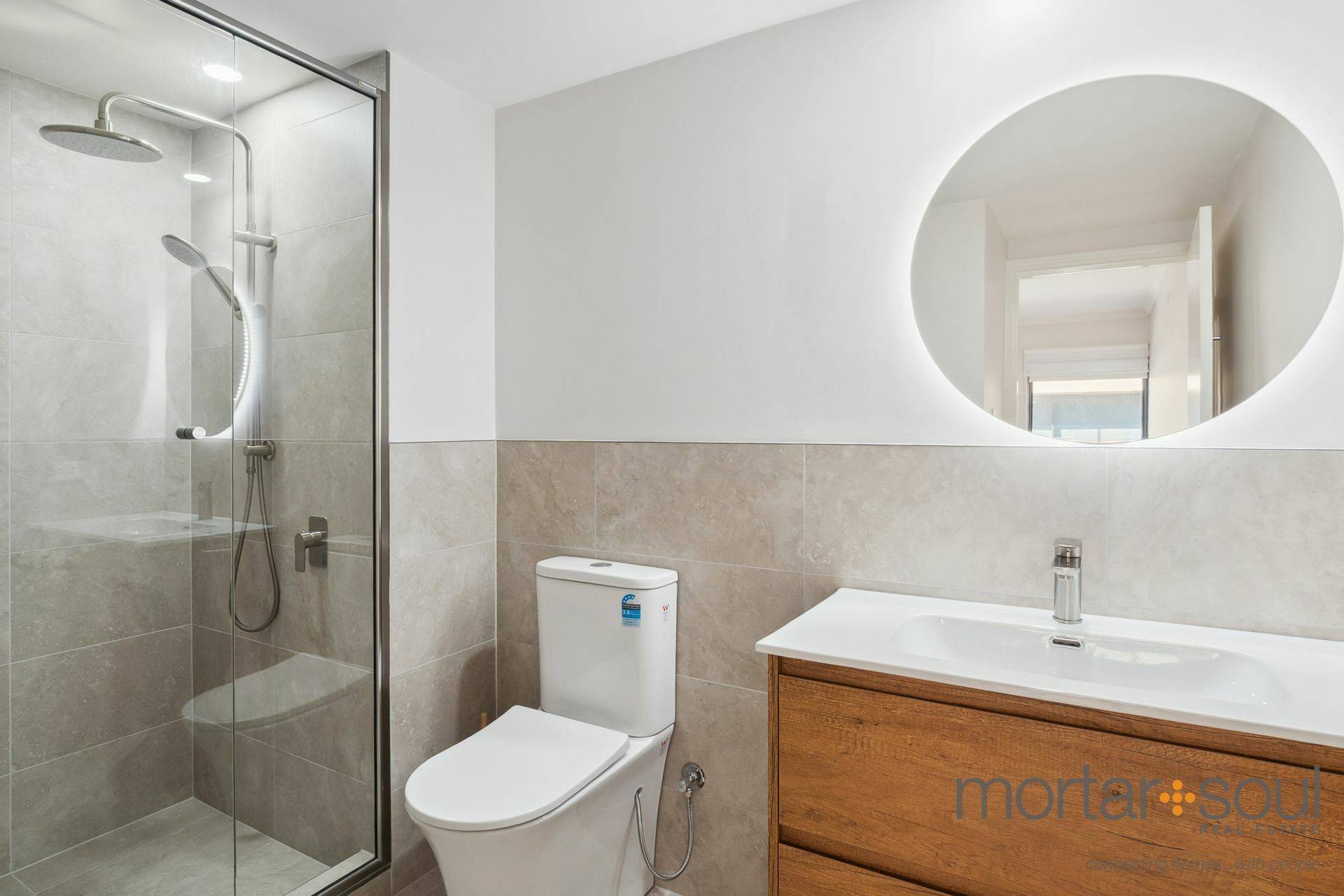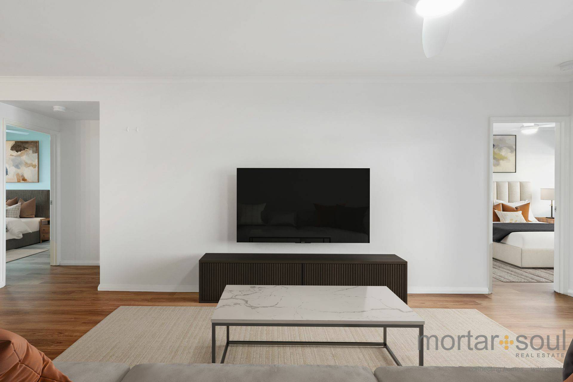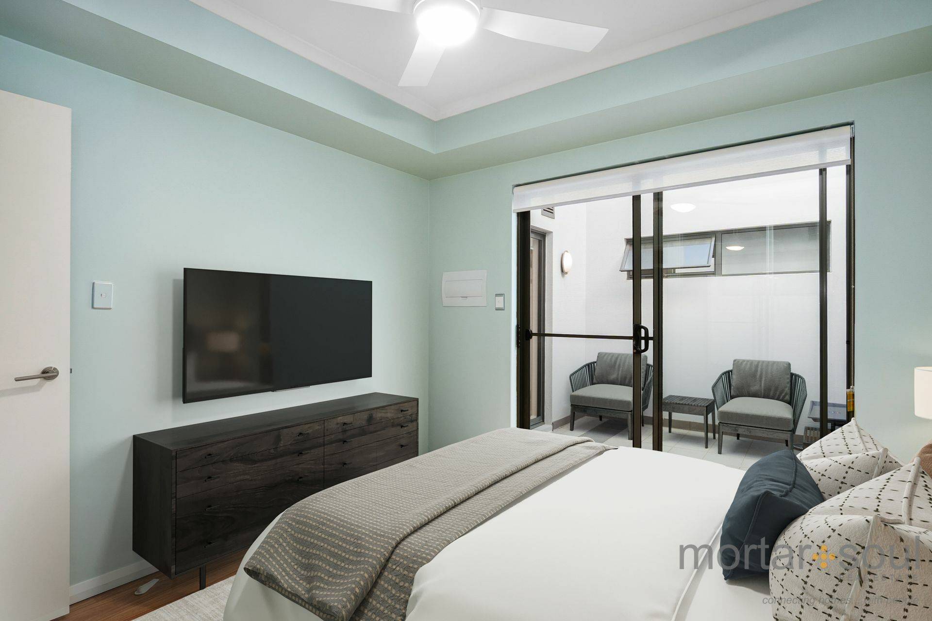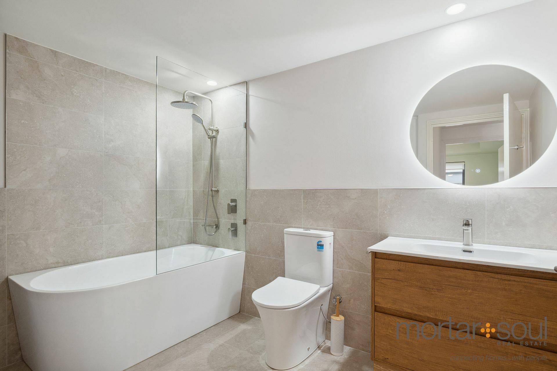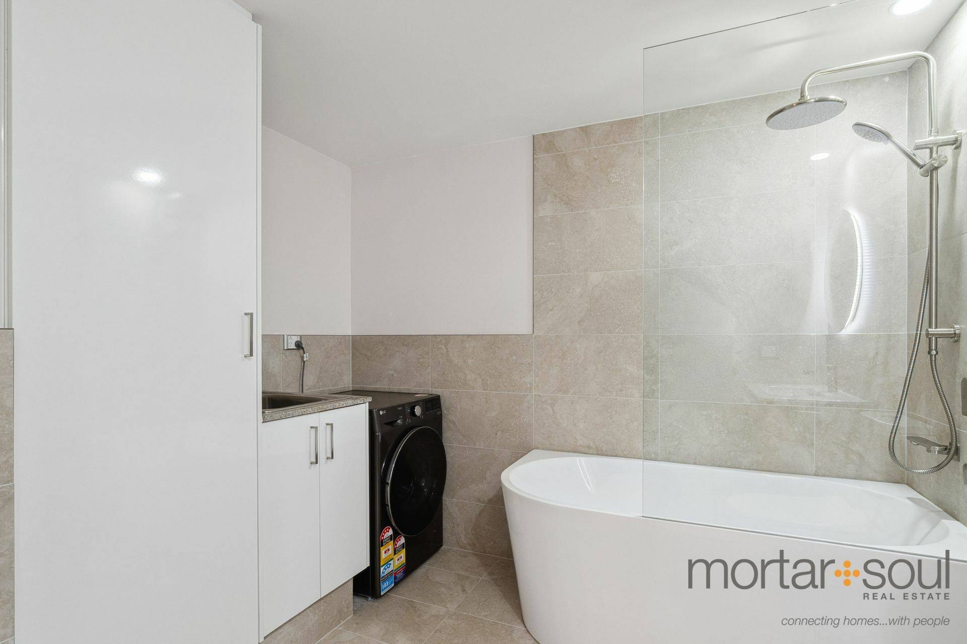 The second bedroom also has mirrored built-in robes and a fan, whilst enjoying access out to the secure front courtyard. Making the most of both the floor and wall space on offer is a combined main bathroom-come-laundry that boasts a bathtub (with rain/hose showerheads), toilet, powder vanity, linen press and a separate wash trough.