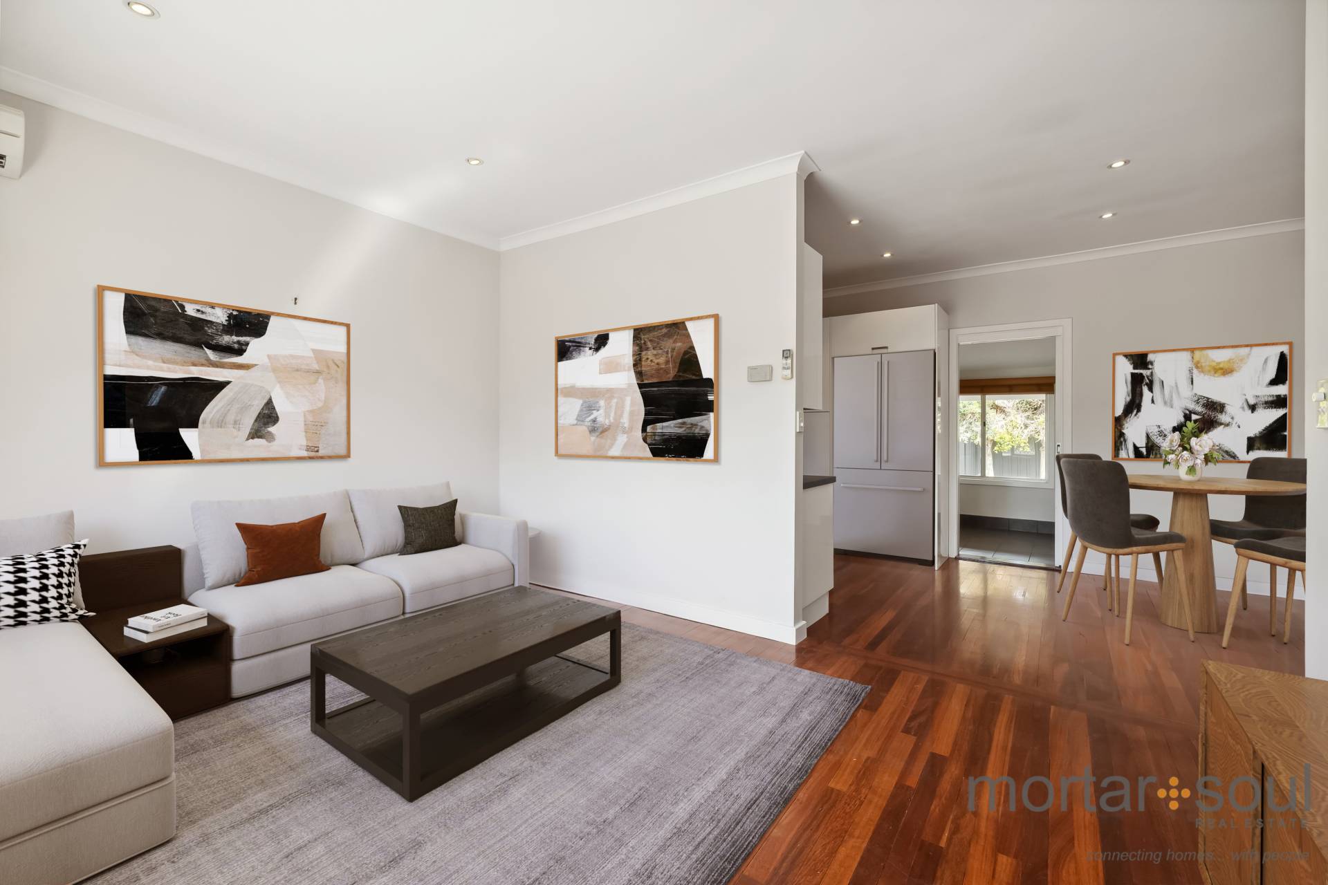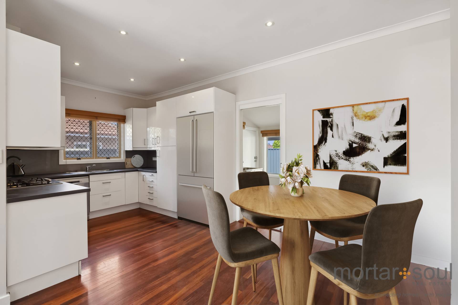 A spacious open-plan living and dining area upon entry incorporates the renovated kitchen into its functional design and is where you are first introduced to solid wooden floorboards that grace most of the residence’s interior. The modern kitchen itself features attractive glass splashbacks, an excellent stainless-steel gas-cooktop, oven, range hood and dishwasher appliances.
