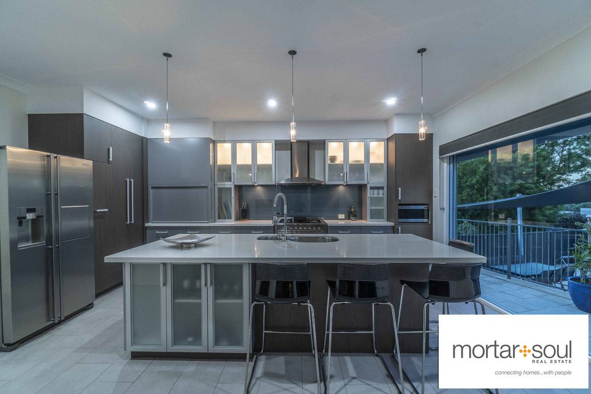 A delightful rear patio deck off both the kitchen and main living space overlooks the shimmering 15-metre solar-heated swimming/lap pool down below. There are also two bonus outdoor areas for you to entertain from around the pool, including a tranquil shade-sail courtyard and a lined poolside gazebo for relaxing and unwinding underneath.