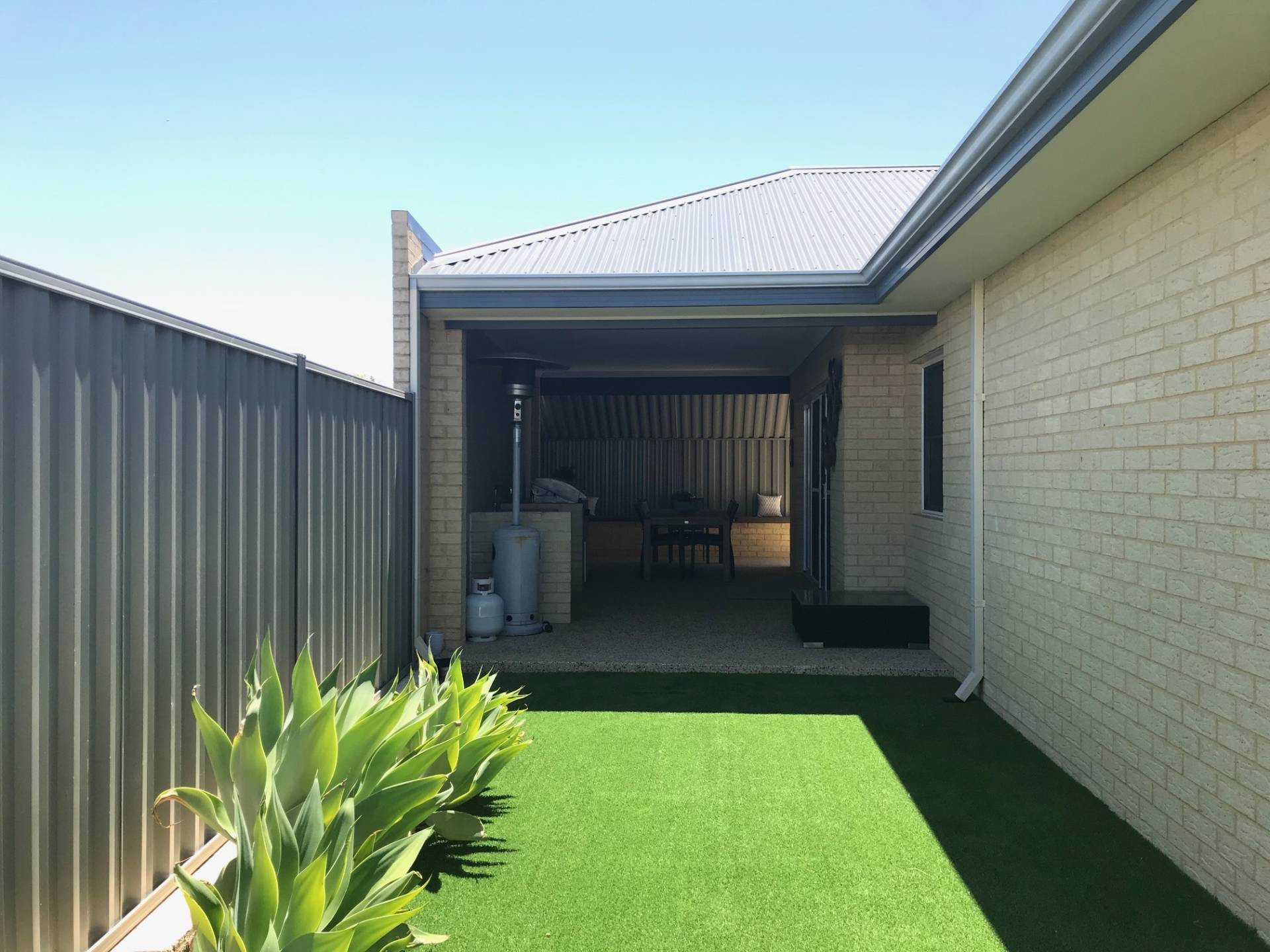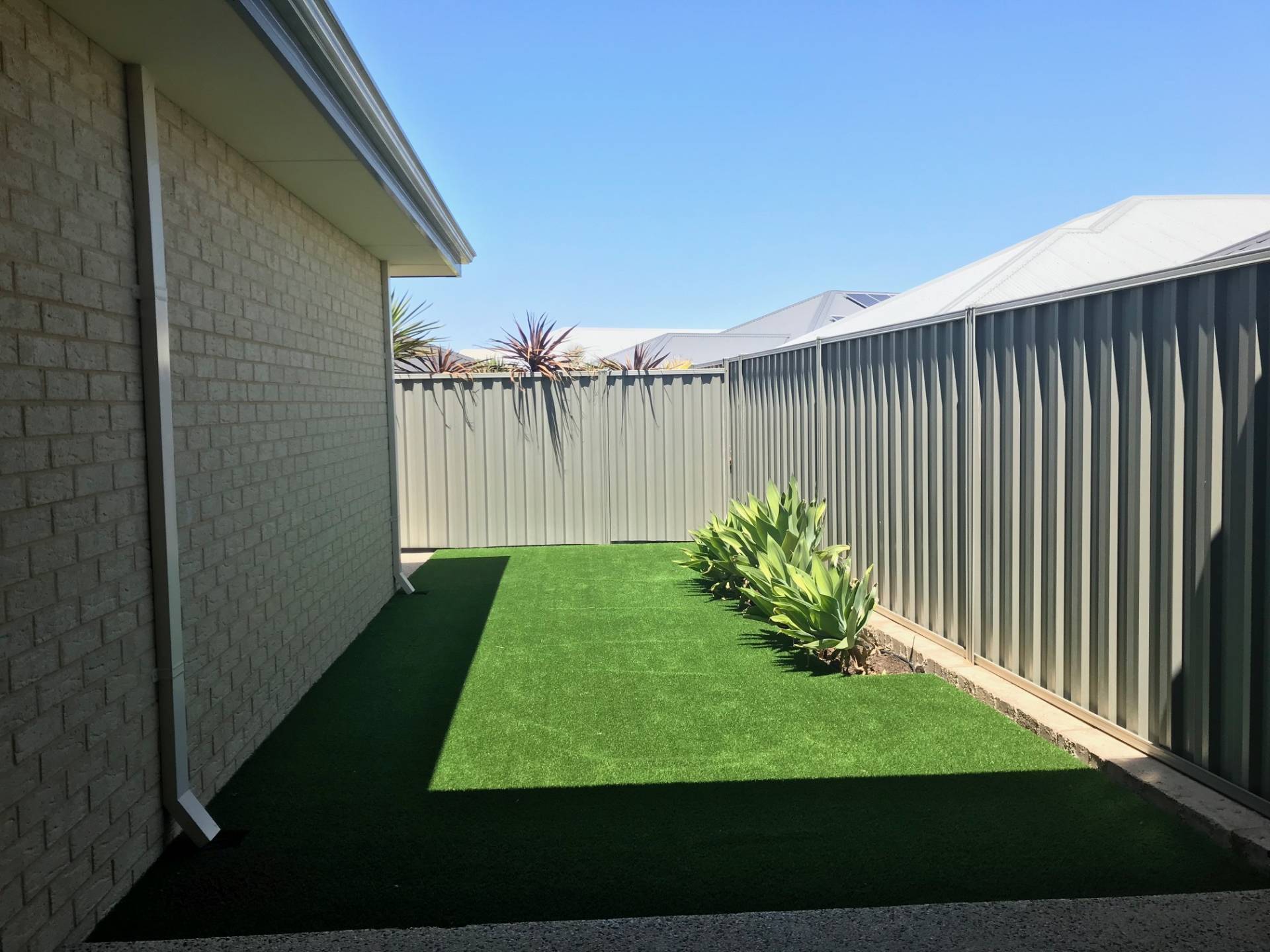 • Easy-care artificial turf and reticulated landscaped gardens – designer planter boxes to front yard
