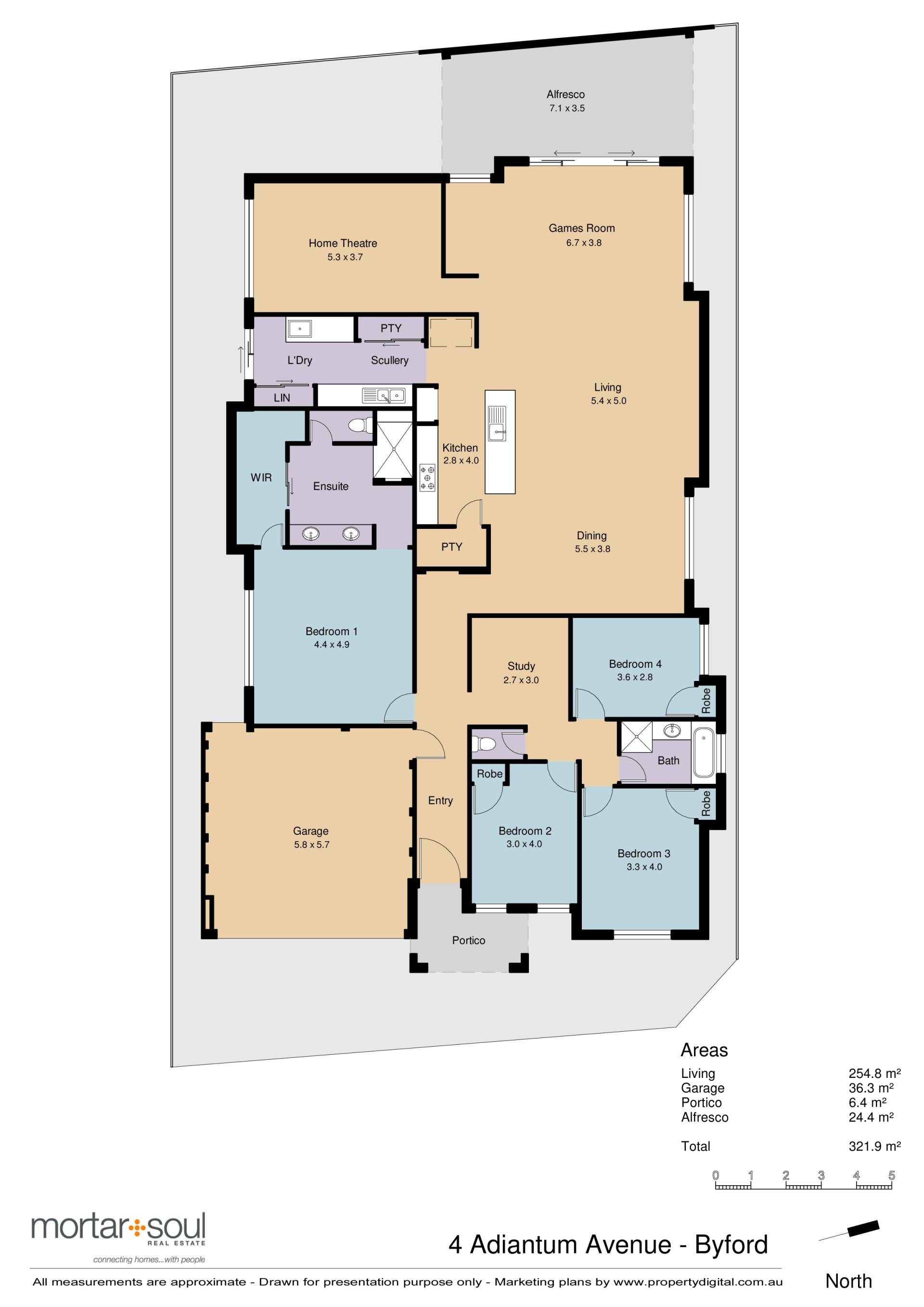 • 321.9sqm (approx.) of total living area – comprising of internal, garage, alfresco and portico spaces