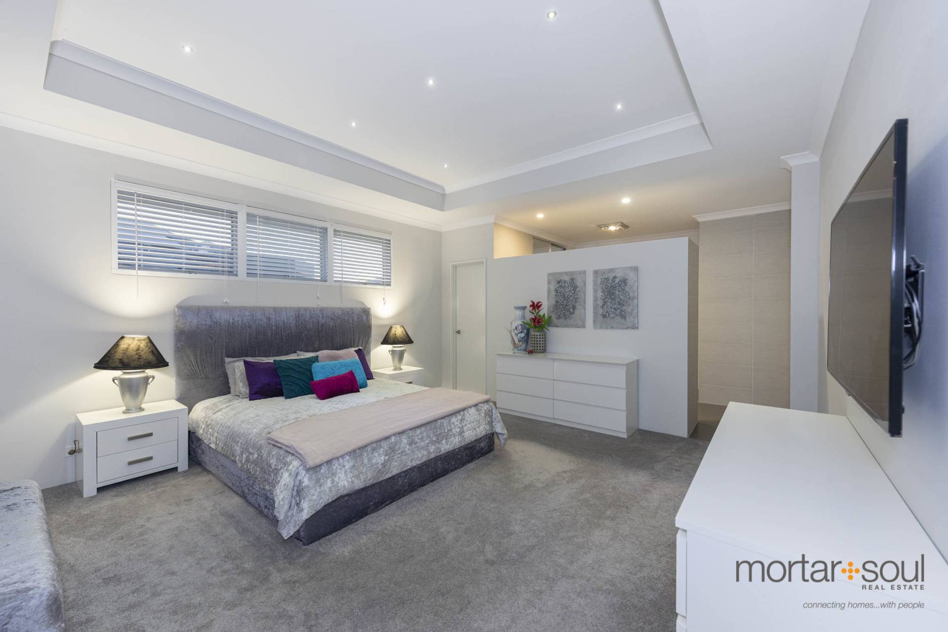 Beyond and awe-inspiring façade, portico and wide feature entry door lies an expansive floor plan that is well worth the wait. A carpeted study off the entry services the minor sleeping quarters, whilst a giant walk-through wardrobe with mirrored sliding doors highlights the sumptuous master-bedroom suite, alongside a deluxe five-star fully-tiled ensuite bathroom with a large shower, twin “his and hers” vanities and its own separate toilet.
