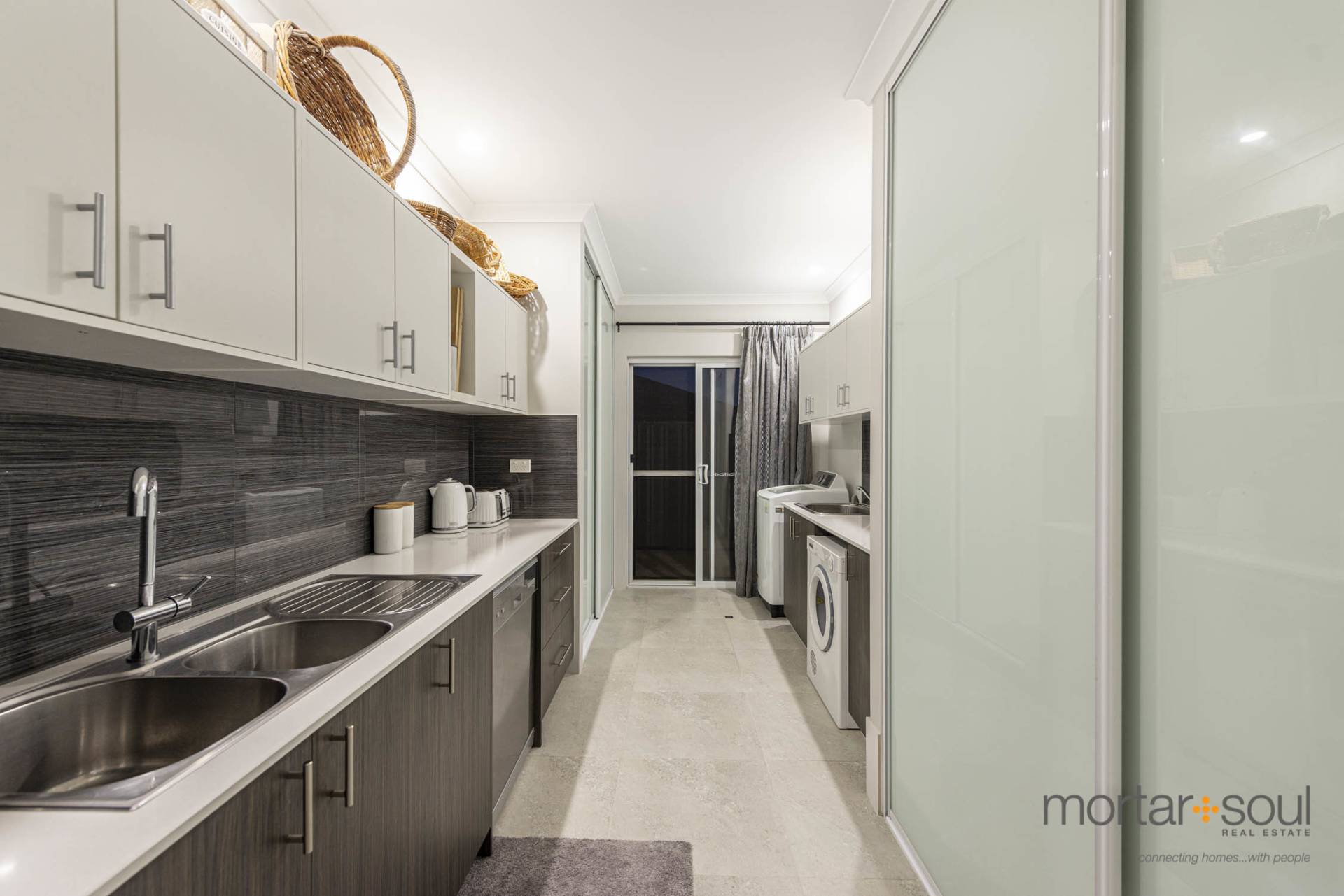 • Well-appointed laundry with ample built-in linen storage, outdoor access and a direct connection to the kitchen via the pantry and scullery area