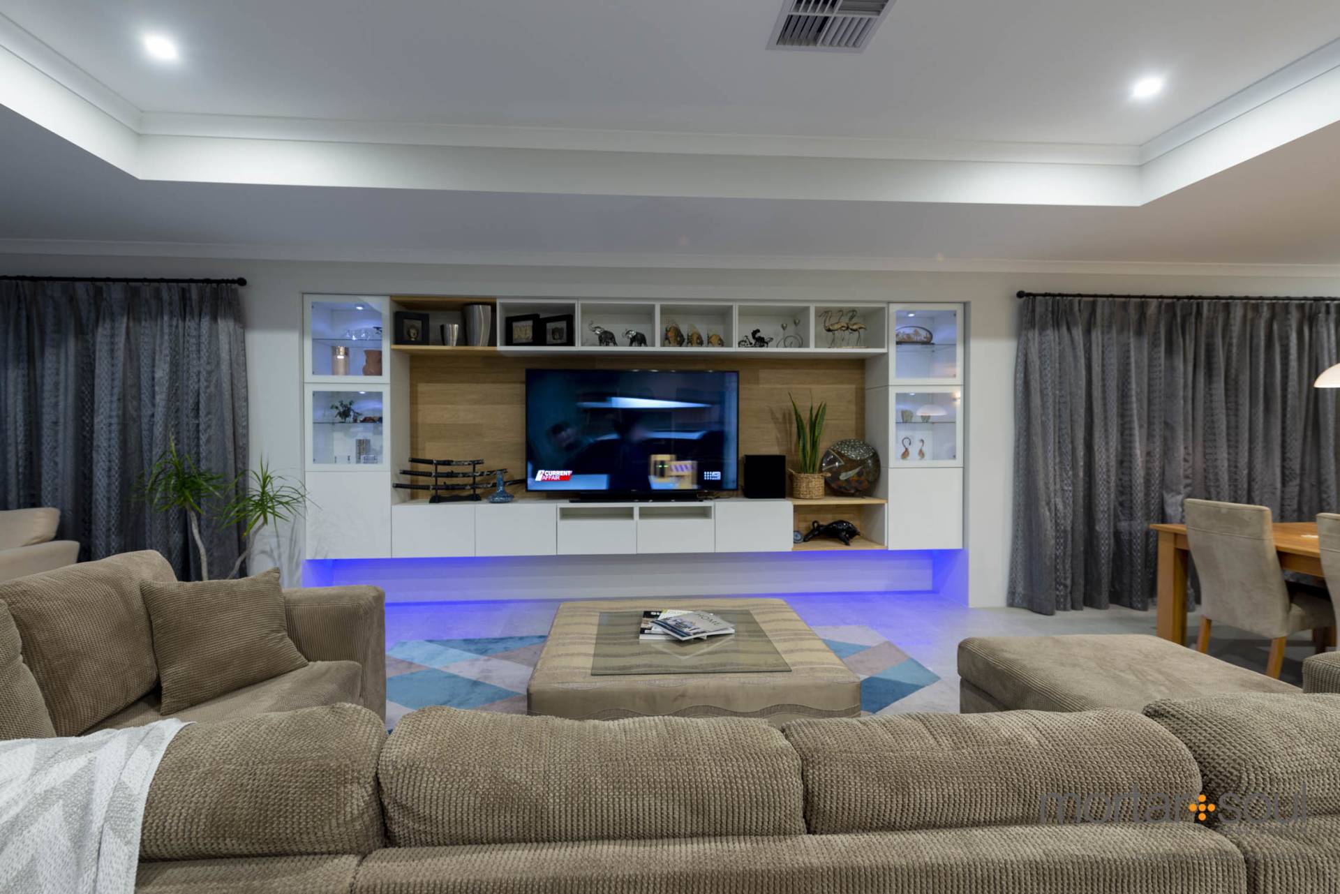• Built-in cupboards and timber furniture to feature living TV wall recess, computer station and bar area with alfresco servery window