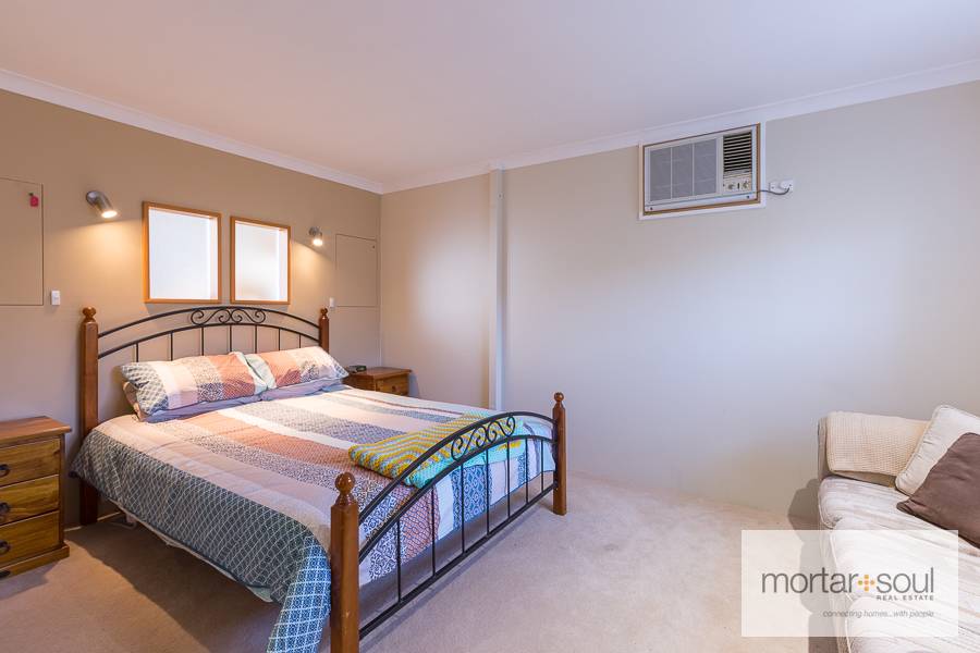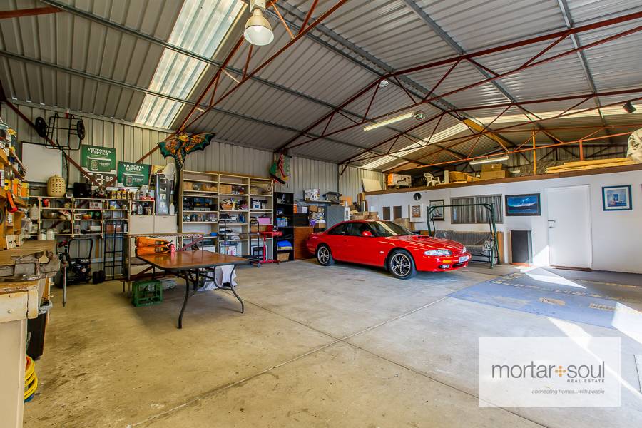 A massive 16m x 10m (approx.) powered colour-bond shed – or “man cave” – with an extra-height entry and the potential to fit a caravan is so well constructed that it includes mezzanine storage, a virtual “second kitchen” in the form if an electric hotplate, a Simpson oven and a sink, plus access into the granny-flat accommodation where a carpeted living area and adjacent bedroom, a kitchenette and a “third” bathroom with a shower and toilet meet air-conditioning, its own electric hot-water system and an enclosed patio that can either be utilised for entertaining or as additional covered boat or trailer parking. With the shed ideal for parties or to simply let family members at either end of the generation tree unwind, the residence itself is a haven of alternative relaxation, boasting a highly-functional floor plan that is sure to keep everybody happy.