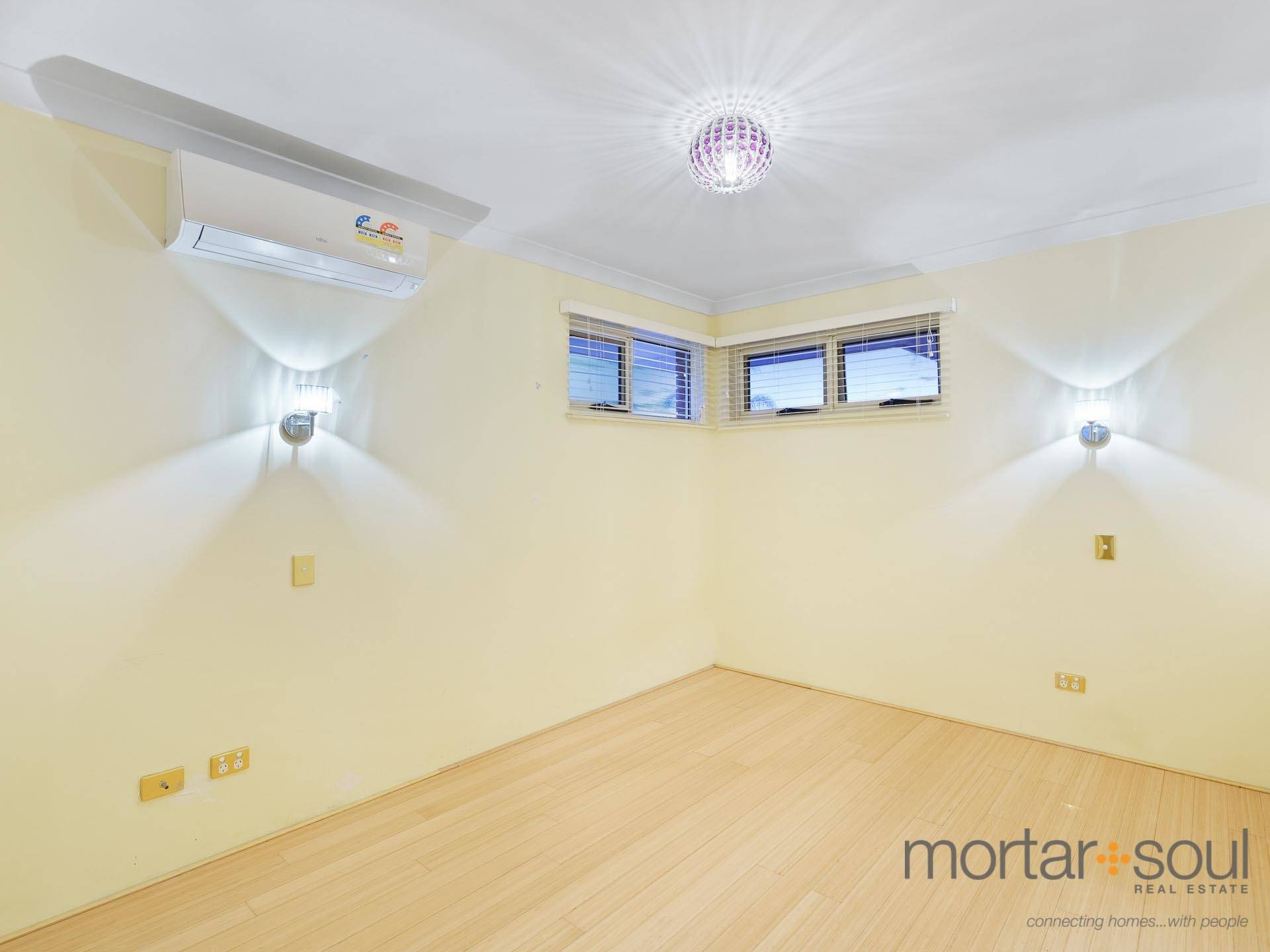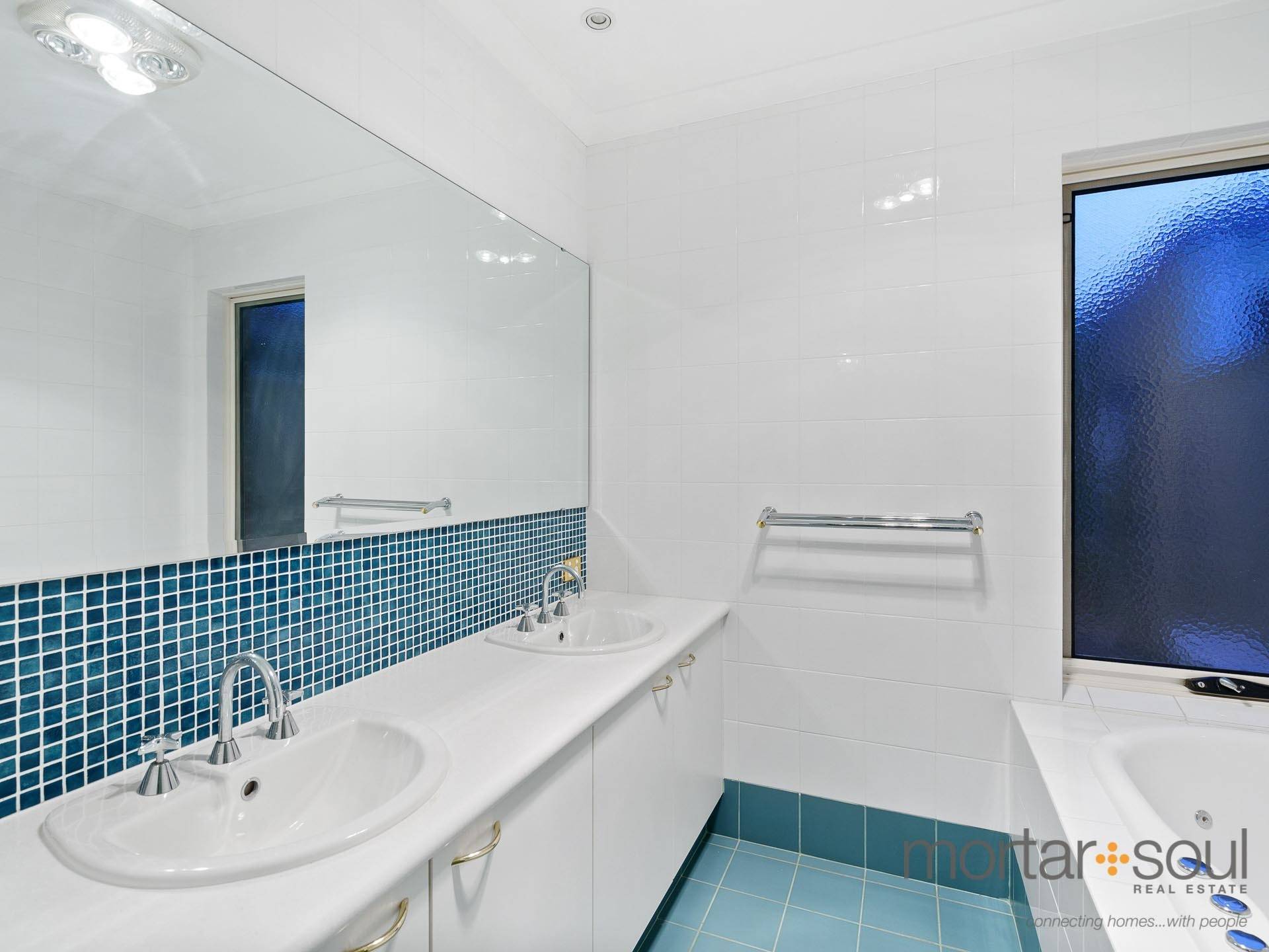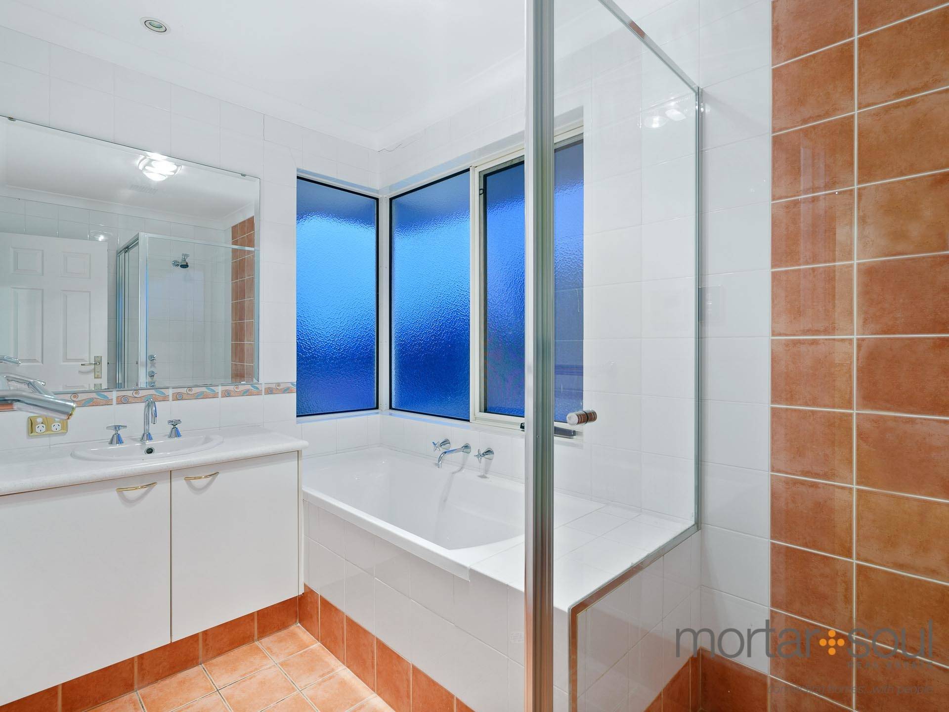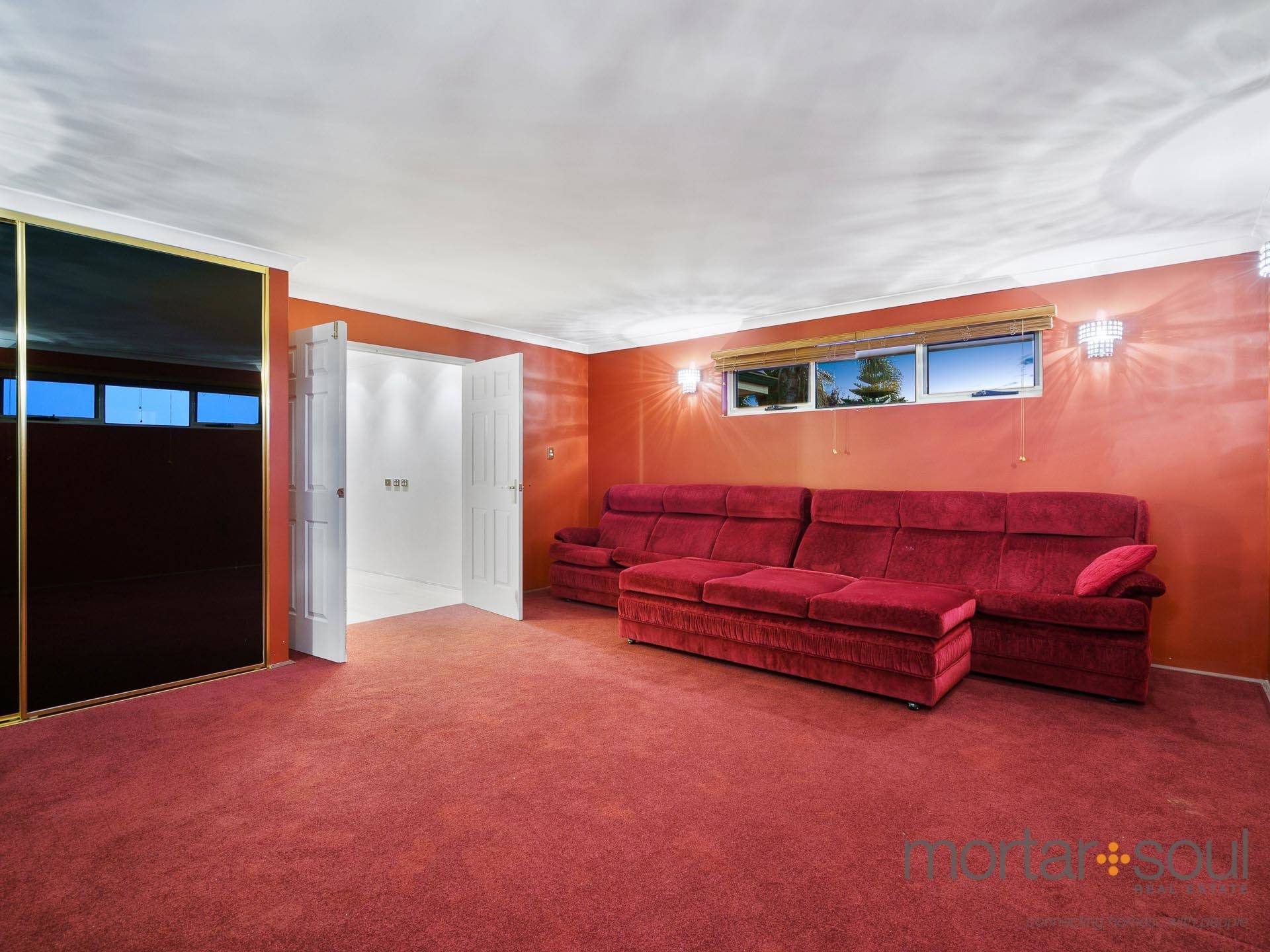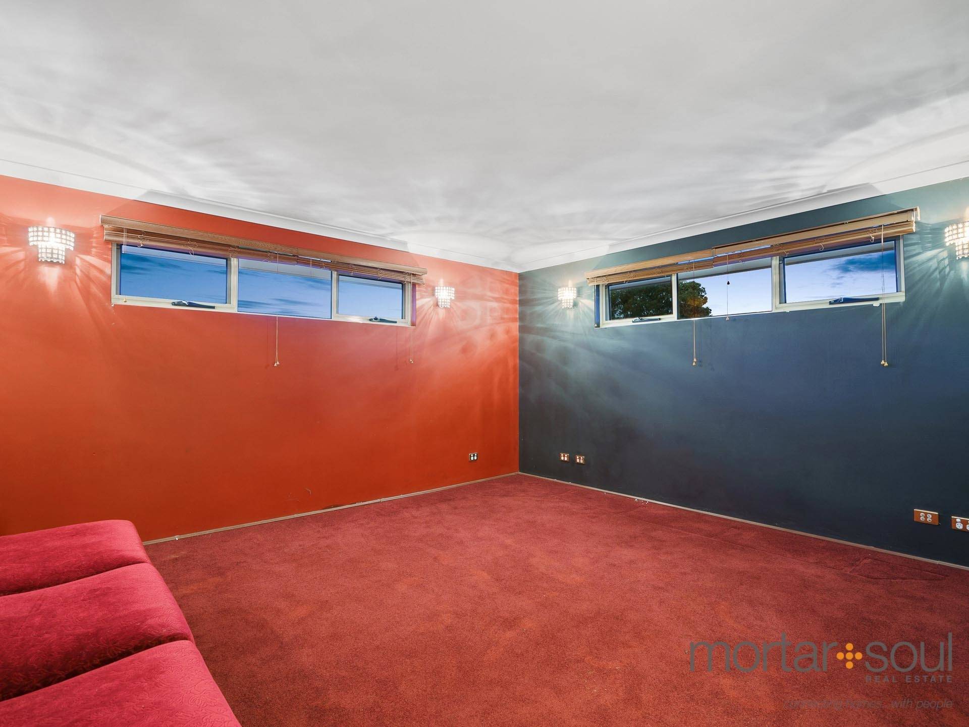 Upstairs, the landing at the top of the staircase doubles as a retreat with yet another kitchenette, adjacent to a large carpeted theatre room with double doors for peace and quiet, mirrored storage, dimmer lighting to help set the mood and a pleasant tree-lined window aspect for good measure. Of the remaining three bedrooms, one also acts as a guest or “alternative master” suite with split-system air-conditioning, mirrored built-in robes and a fully-tiled ensuite comprising of a shower, toilet, vanity and heat lamps – totally separate from the main family bathroom that services everyone else on the top floor.