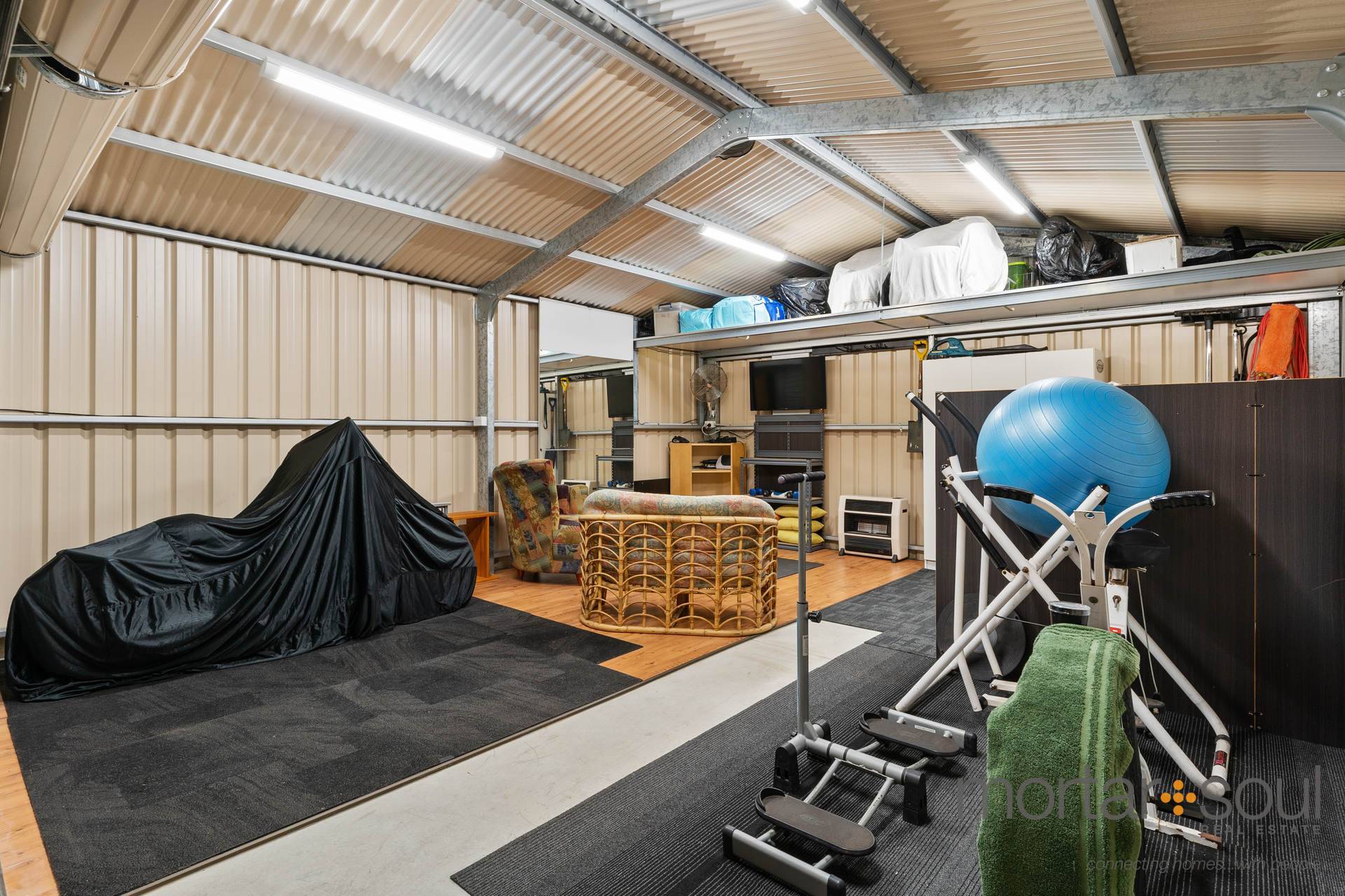 In terms of parking, there is space for up to six cars comfortably – two underneath the large tandem double carport, more on the second hardstand “heavy-load” driveway that is separate from the main driveway and several extra vehicles in between. That is not including the powered double lock-up garage-come-workshop shed at the back of the property, accessible from the carport via double gates and boasting double roller doors of its own, along with an antenna, lighting and additional mezzanine storage options.