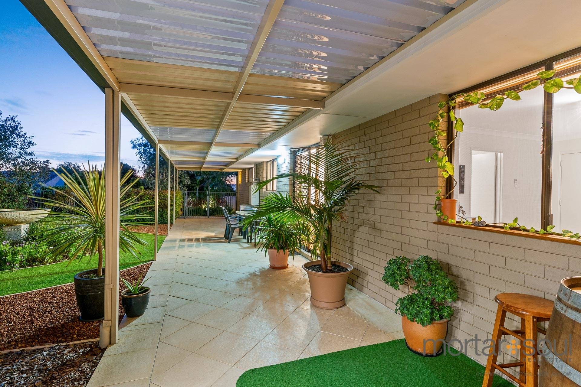 A welcoming front lounge room sets the scene for the excellence lying within here, leading through to an open-plan kitchen and dining area where a breakfast nook, generous built-in cupboard storage, double sinks and tiled splashbacks meet an Italian-made Whirlpool gas cooktop/oven, plus seamless outdoor access to a fabulous 14m x 3m entertaining patio running the full width of the house. All this overlooks a professionally-landscaped garden and bird aviary that is easy care with high-quality artificial turf (no lawn to mow here).