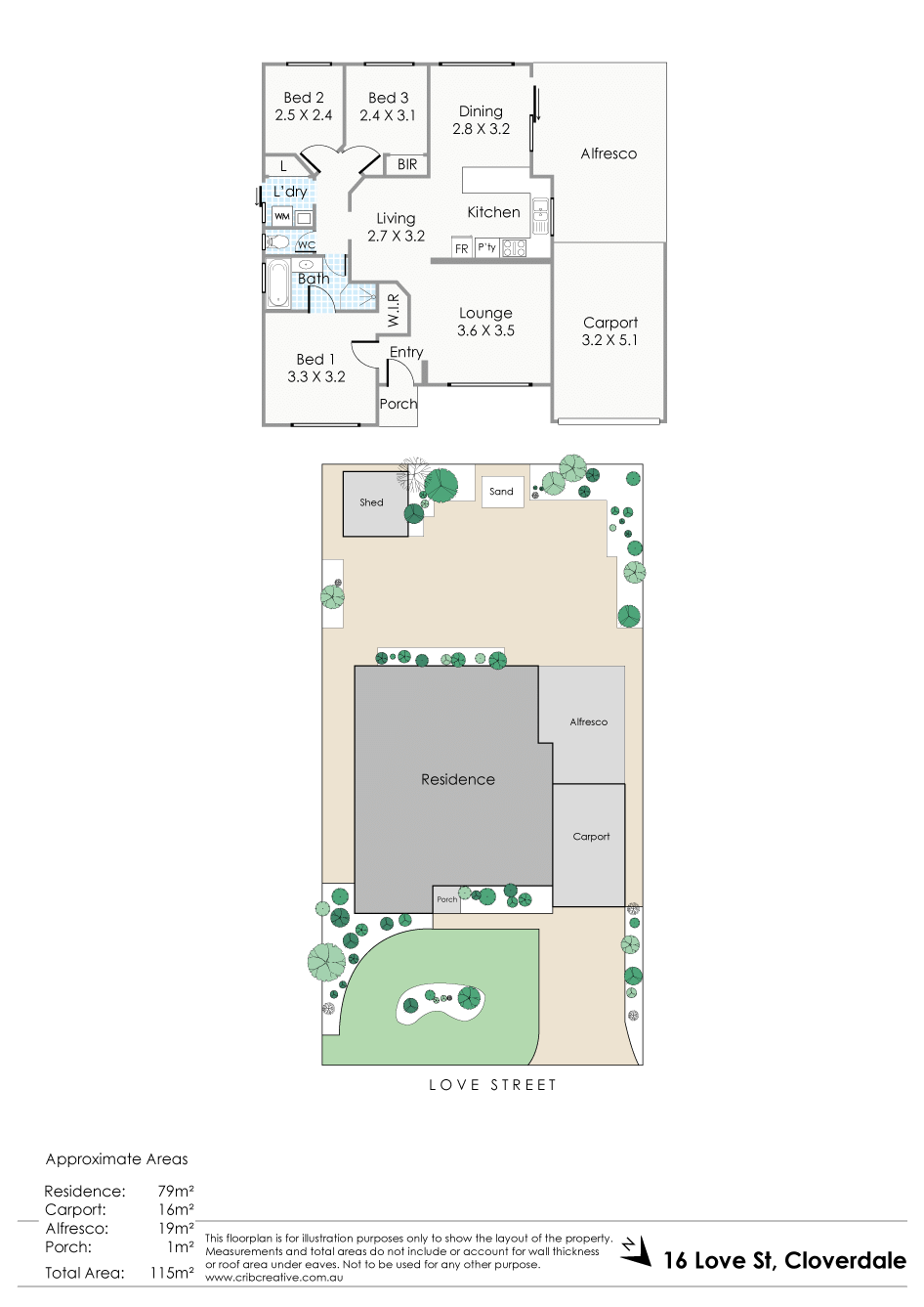• 115sqm (approx.) of total living area – including the carport, alfresco and porch